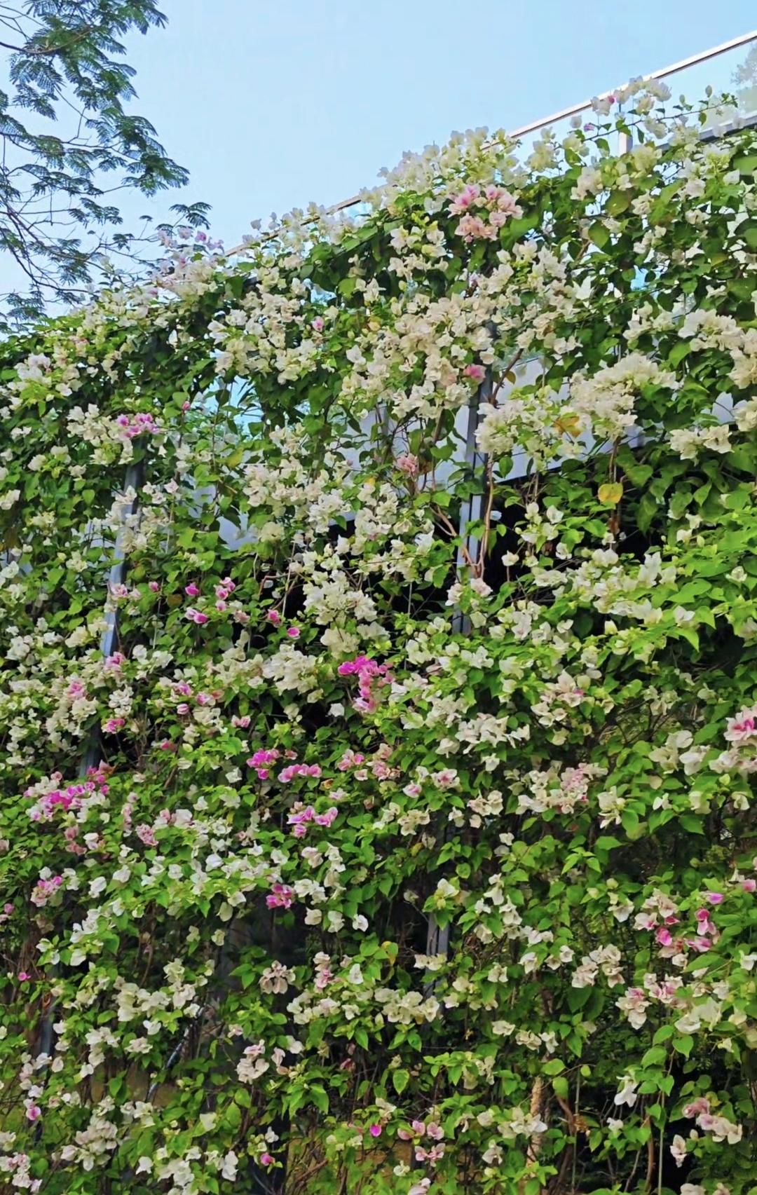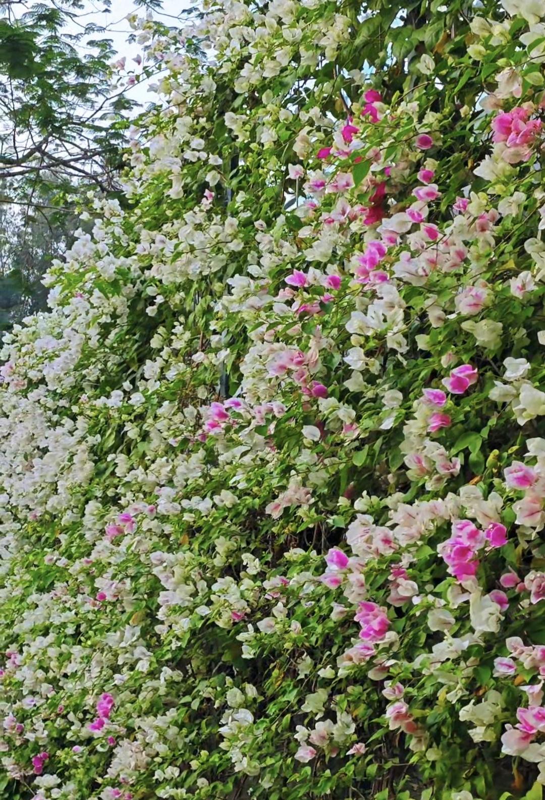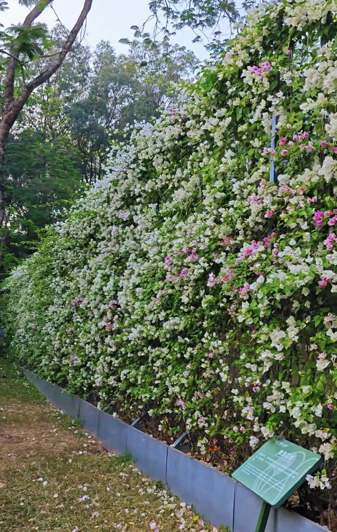 今天下午下班后,在深圳徒步了一个多小时,发现了不少美景,印象最深的就是这一堵簕杜鹃花花墙。它位于深圳莲花山公园深业上城天桥附近。我真的太喜欢这种色彩了,绿色淡绿色乳白色粉红色,这是大自然最佳的色彩组合,看上去清新自然美丽,而且规模很大,真的是打卡拍照的好地方。经过最近几年的建设,深圳越来越有花城的风范了,现在已经是12月5号了,处处春意盎然。明天周末,有时间去看看吧。 深圳赏花打卡地