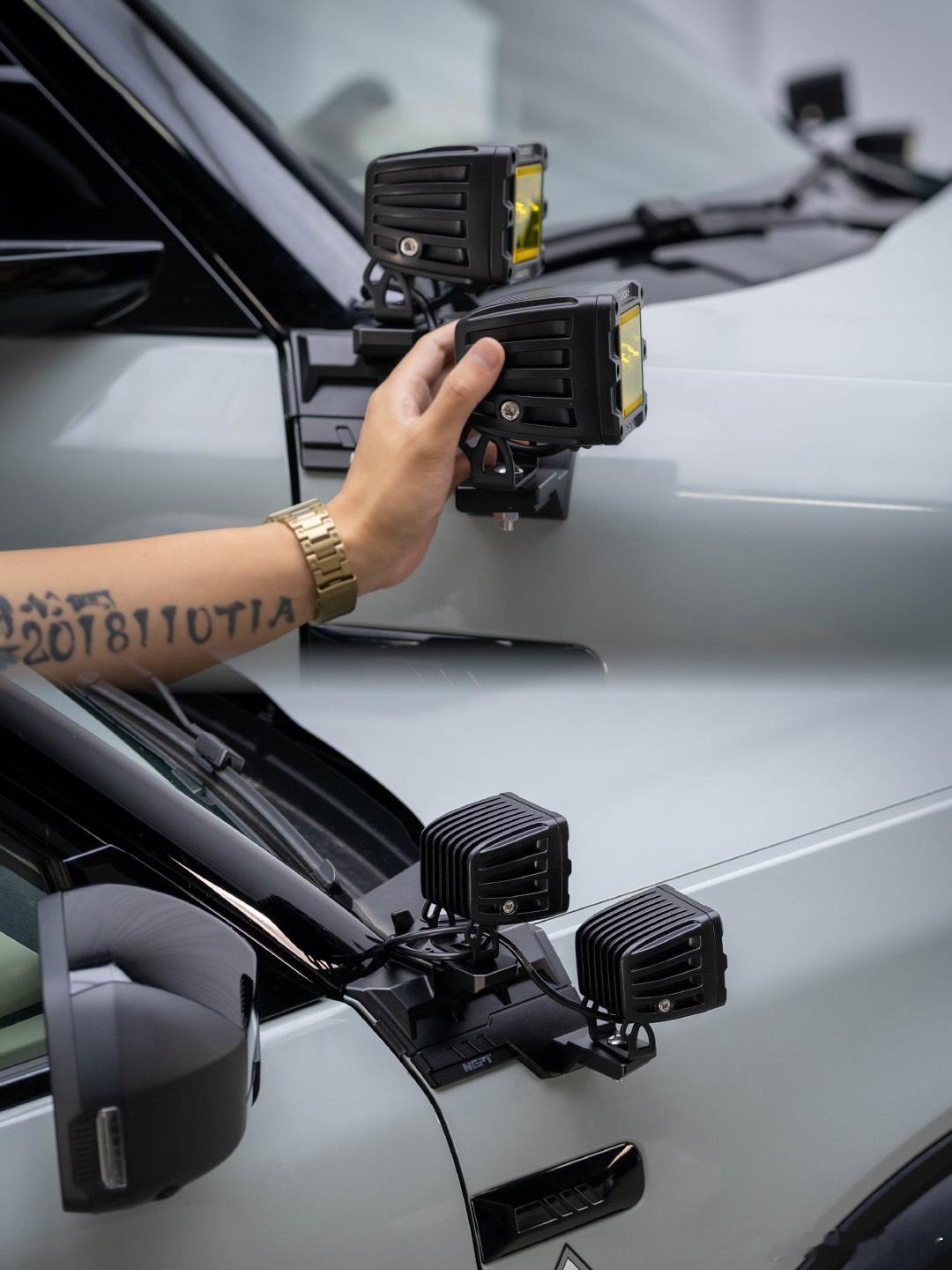 为福特智趣烈马首发:让灯光与原车融为一体的臂膀我们为「福特智趣烈马」带来的,不止于一对支架。 这是一个 为专业灯光系统而生的、安全且优雅的「原厂级承载平台」。 它叫 A柱双灯支架。我们相信,真正的升级,从不以牺牲安全与美为代价。🔦 设计为安全而生 • 采用高低双灯位错位设计,精准规避驾驶视线盲区,光线只照亮前路,不干扰判断。 • 侧前方照明显著增强,在每一次夜间转向与探路时,给予你多一分从容。⚙️ 稳固为信赖而造 • 多点位强化固定,结合接触面专业缓冲胶垫,确保在各种颠簸路况下牢固如初,有效抑制震动异响。 • 以原车A柱弧度数据精准开模,真正无损安装,不破坏车身结构,保留完整性与原厂美感。✨ 工艺为持久而立 • 整件采用航空级铝镁合金,经CNC精密雕刻一体成型,确保长期承重不变形,诠释何为“可靠”。 • 线条延续烈马硬派基因,造型凌厉霸气,不仅承载灯光,更显著提升整车视觉张力,让改装效果浑然天成。它不是一个附加件, 而是你灯光系统的安全基座,是整车气质的硬核延伸, 更是你在黑暗中向前时,那一份无需顾虑的底气。我们发布的,不仅是一个支架, 是一种对待夜间探索的郑重态度。适用于:福特智趣烈马让每一束光,都牢固、得体、充满力量。