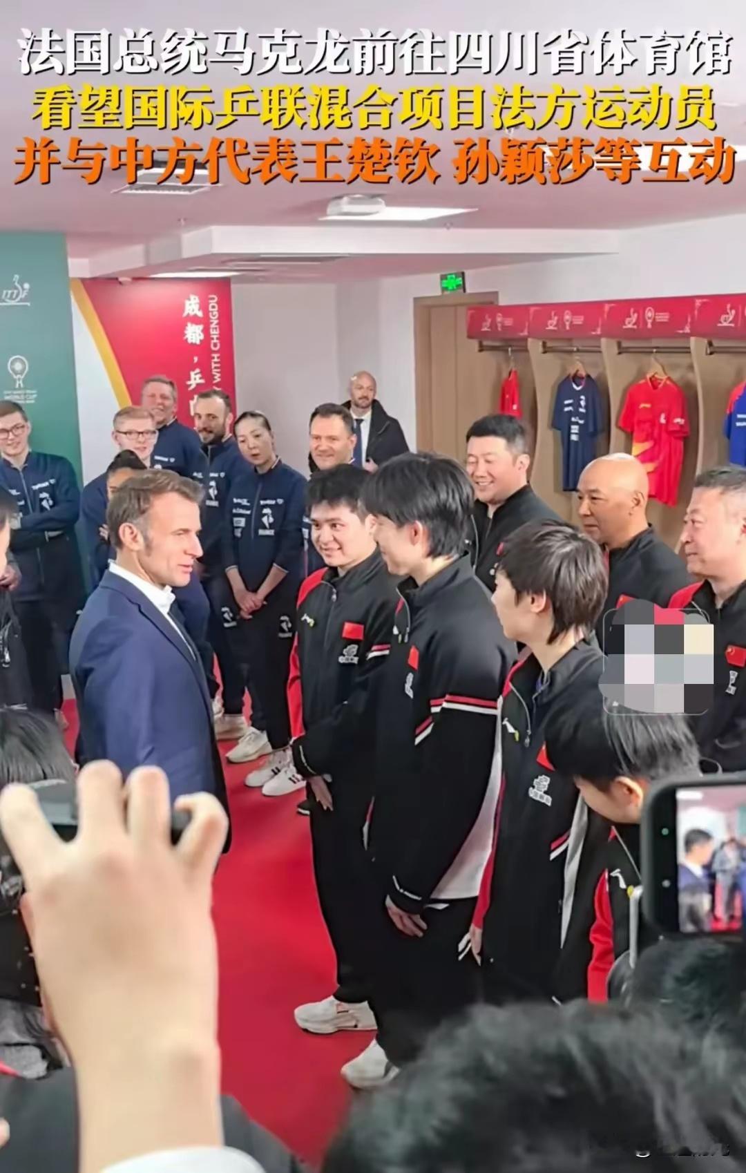 马克龙前往四川省体育馆 和孙颖莎王楚钦打混双乒乓球 场面欢乐和谐乒乓球马克龙 法国总统马克龙前往四川省体育馆看望国乒运动员,中方国乒运动员代表孙颖莎,王楚钦,王曼昱和林诗栋。马克龙和孙颖莎,王楚钦打混双乒乓球,有来有回,场面十分欢乐,笑声不断。
