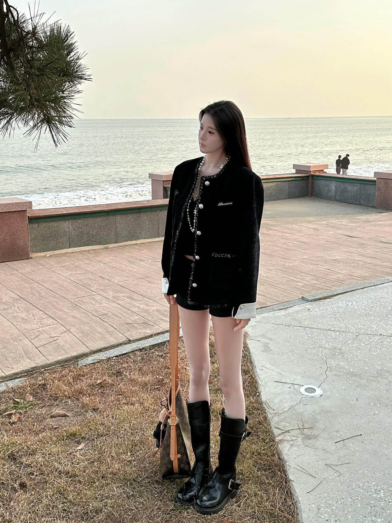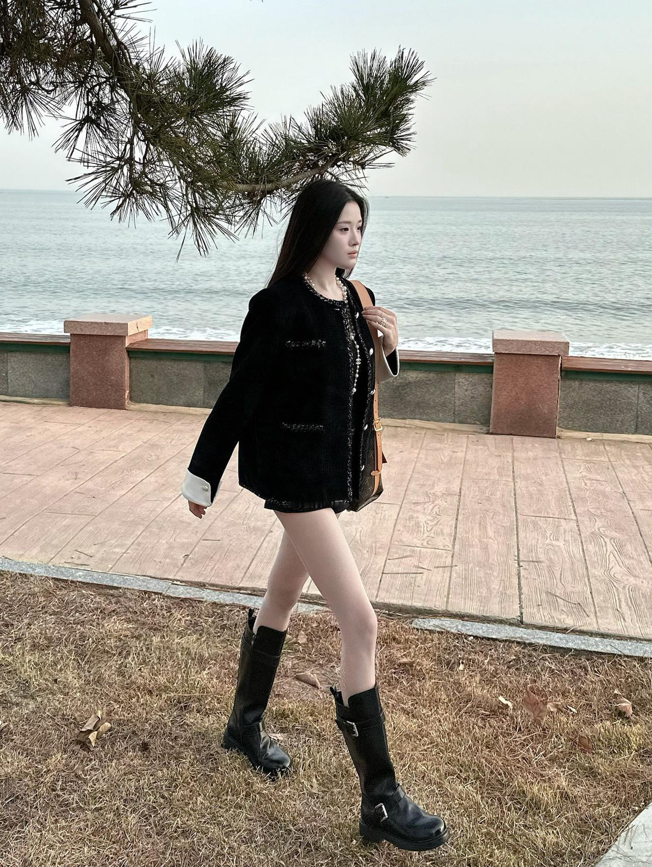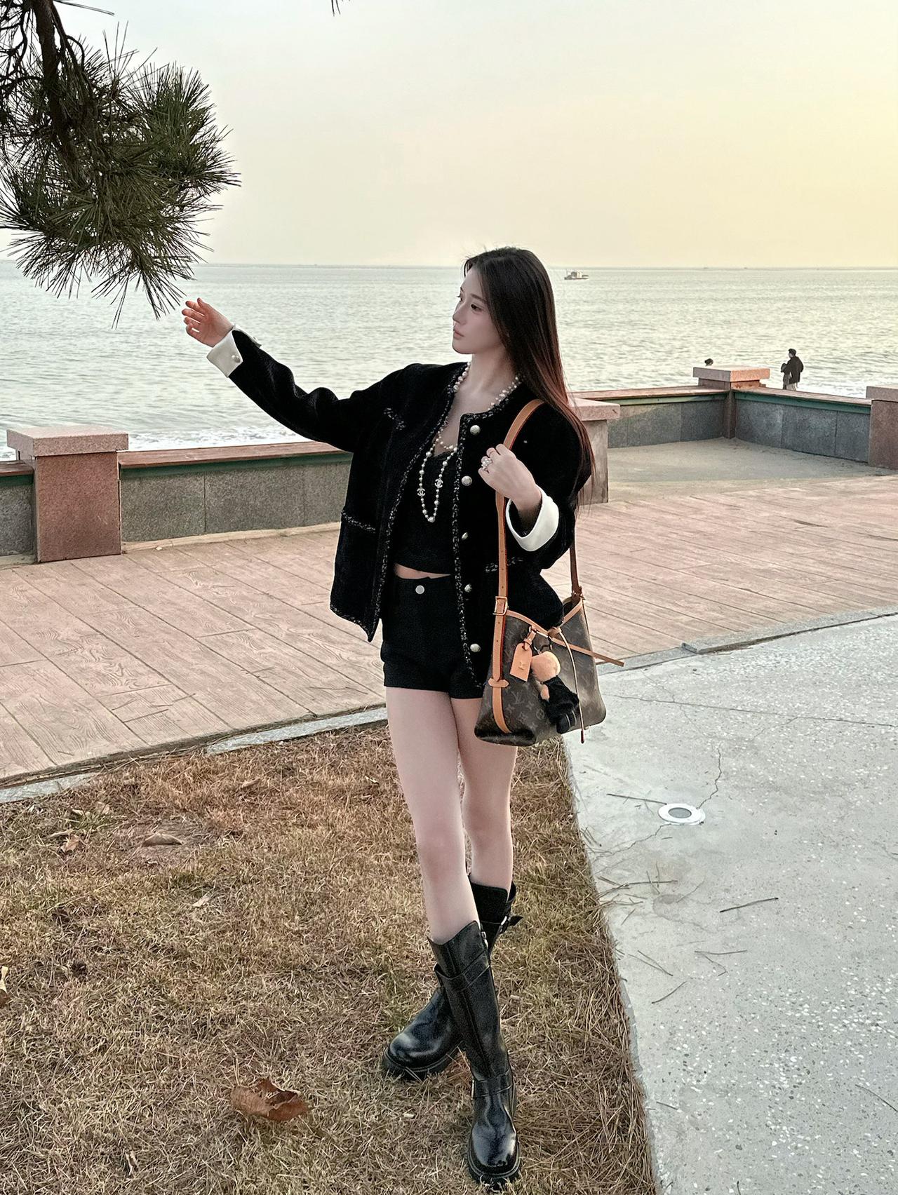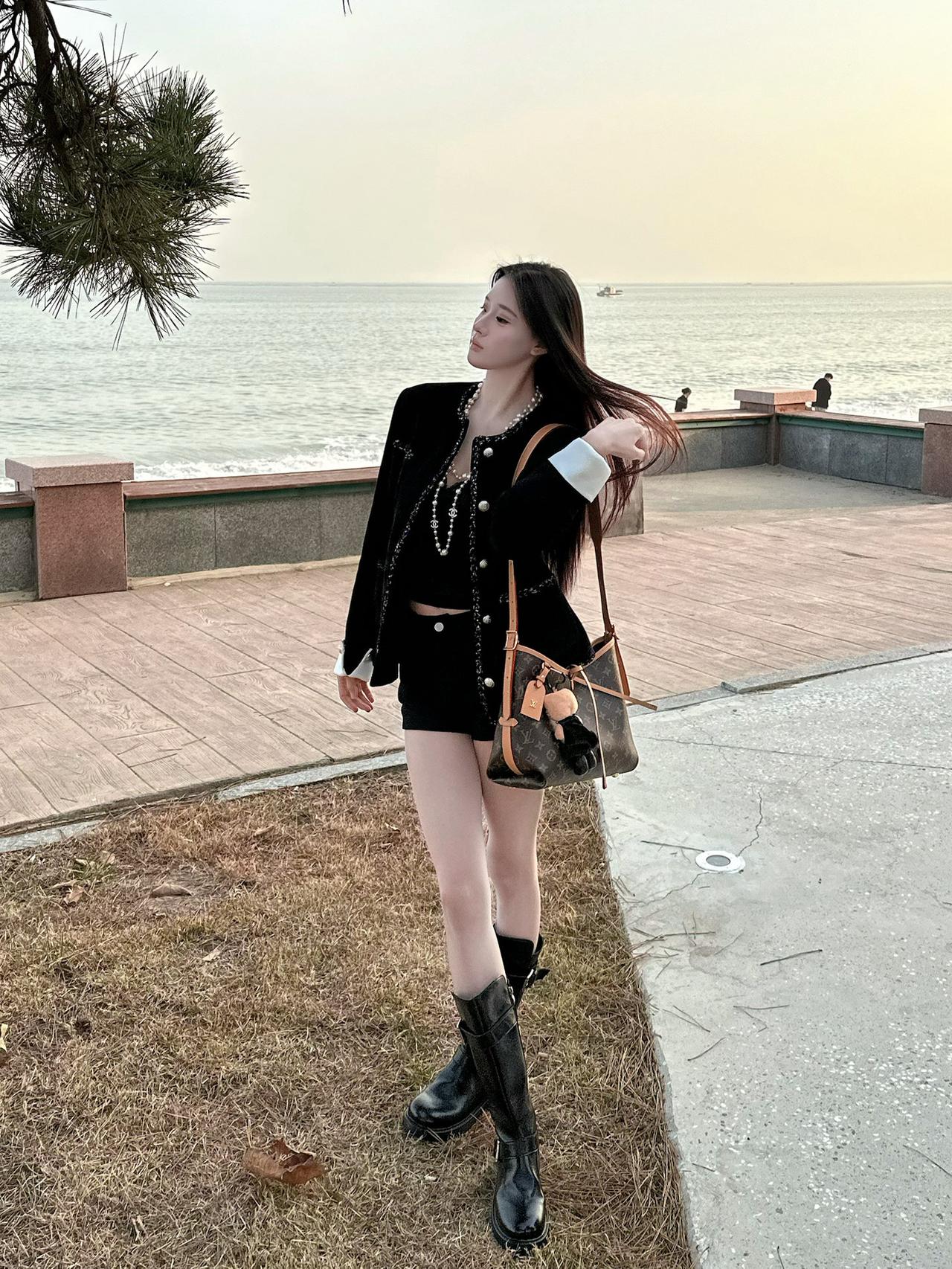 黑丝绒+LV小托特 | 法式慵懒海边穿搭,精致感小心机get|||海边散步特意背了这只LV小号托特,轻便又能装随身小物刚好合适~ 挂的黑皮Kitty挂件是点睛的小细节,和黑丝绒外套的质感特别搭,冷色调海边里添了点可爱小心思。 短款黑丝绒外套的微廓形设计显瘦不压身高,搭配5cm粗跟短靴修饰腿型超显比例,整体不拖沓还很利落;包包的老花纹理和黑丝绒的哑光质感碰撞,精致感直接拉满还不刻意~ 姐妹们觉得海边穿搭还需要哪些精致小细节?或者你们有什么私藏的LV托特包搭配技巧?评论区一起聊聊~lv穿搭展示 LV风穿搭 LV老花托特 黑色托特包包 lv水墨外套 托特包穿搭 漆皮菱格包