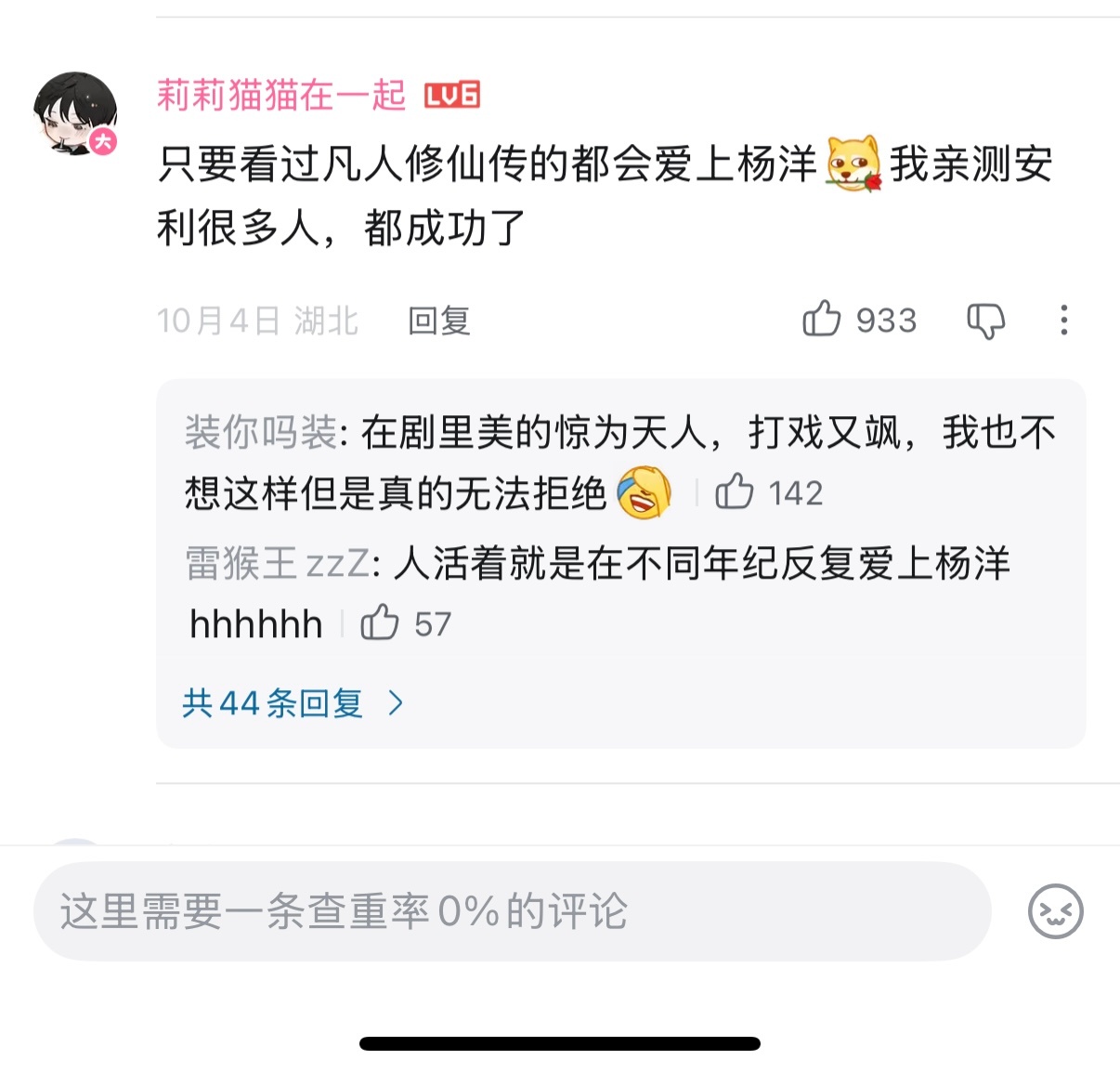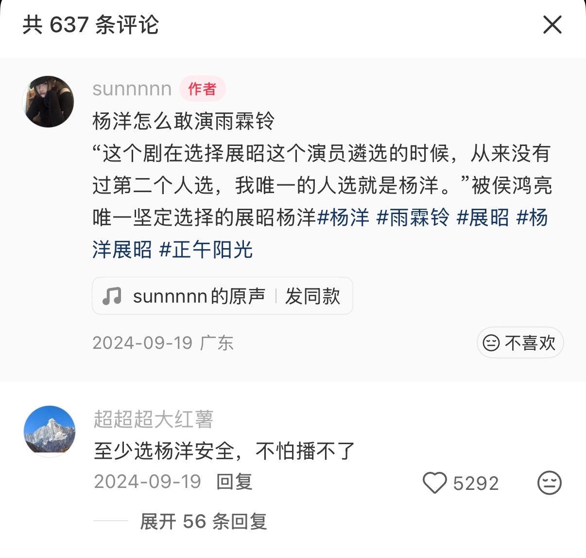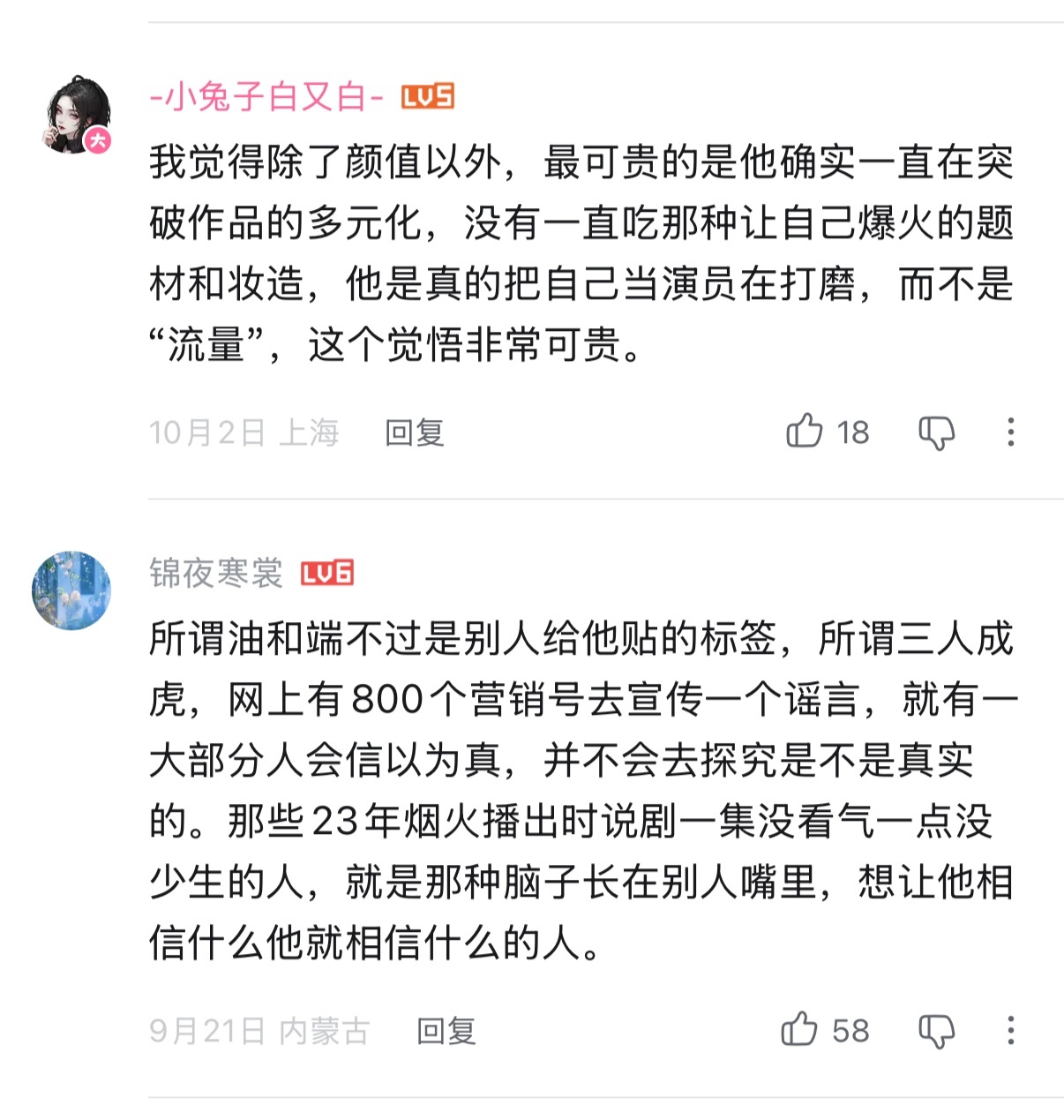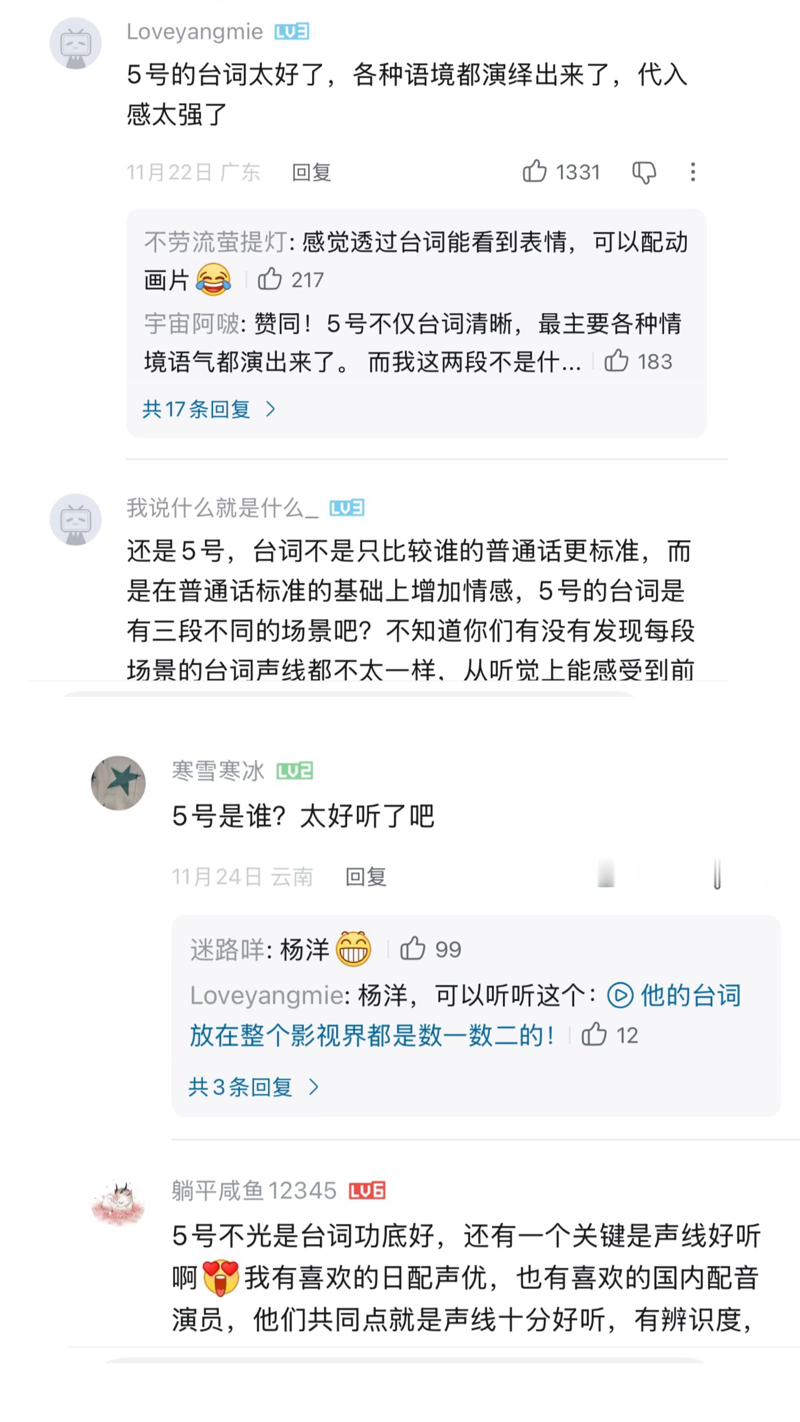 这两年不仅仅是女性的自主意识,大众的判断力也在觉醒,对于一些观点人云亦云的少了。比如某些配角辣菜主角上位,大家开始思考这个问题背后的逻辑,如果单扛能力足够就不用来别人的剧里作妖了。拿我自己来说,2023就会有这样模模糊糊的概念莫名讨厌河童,而到了今年看到又有配角想给自己镀上一层童年白月光的滤镜的时候莫名想笑,这样的误导型套路我见了两次。为什么都来吸血杨洋呢?说到底还是血条太厚又正直善良不爱营销,所以总有人试图用颜值来故意掩盖他的才华甚至泼脏水,依然难掩他的锋芒。哪怕仅仅是一段没有露脸的录音,他也凭借字正腔圆和感情充沛赢得听众青睐,更别说文戏和武戏了,但凡给个公平的评价都能看出来他藏在眼神和动作里的硬核实力。当然这不仅仅靠天赋,更是三十一部作品的沉淀,才有了如今的杨洋。最有资格最容易吃流量红利,但却要偏偏靠自己,用作品杀出一条血路。这样的杨洋只要站在那里就已经是明月高悬了,照不照我无所谓,我只要他高悬就好。