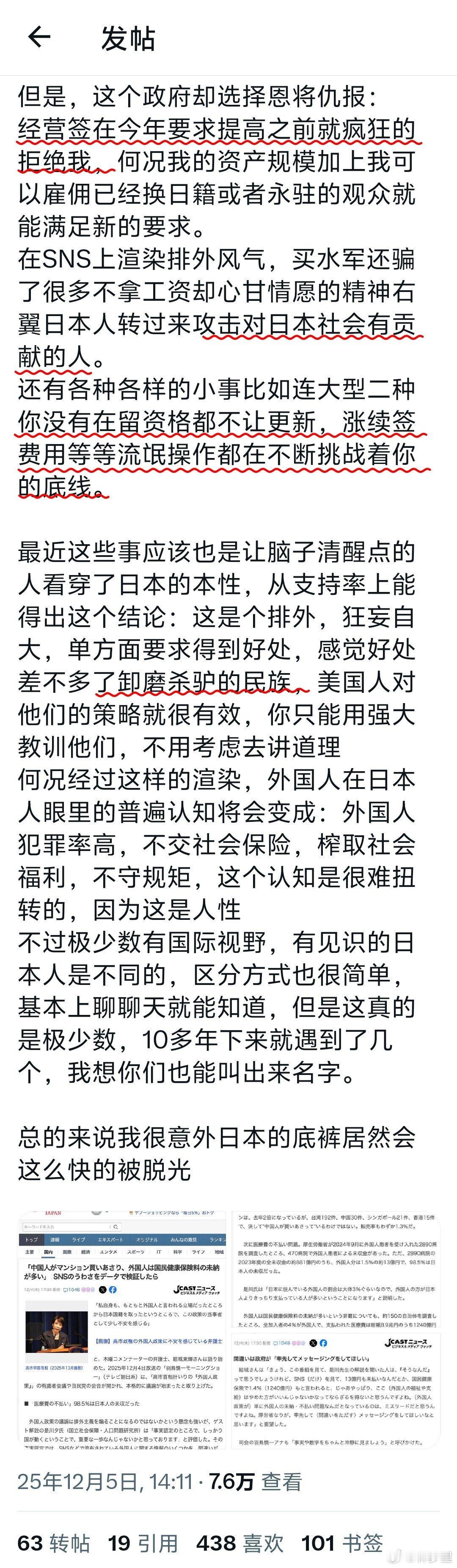 笑,精日被日本背刺了。X上刷到有人说自己2013年去了日本后,就为日本的入镜和地方观光事业做出了非常多的贡献,很多人看了他的内容去日本留学或旅游。他帮日本忽悠了很多人过去,结果日本恩将仇报,不把他当自己人,各种卡他,涨续签费用。还要被很多不拿工资却心甘情愿的日吹们攻击。于是,他终于发现了日本的本性,说日本是一个排外,狂妄自大,卸磨杀驴的民族。