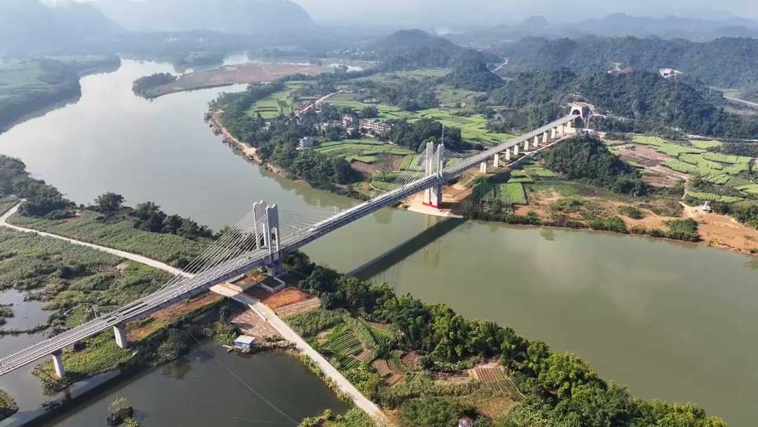 南凭高铁崇凭段穿越溶蚀、剥蚀低山丘陵区,地质条件复杂,施工难度较大。自2022年7月开工建设以来,国铁集团组织各参建单位把绿色发展理念贯穿铁路规划、设计、建设全过程,加大科研攻关力度,强化安全、质量和环保控制,优质高效推进工程建设,建成了上金左江双线特大桥等桥梁工程和花山隧道等隧道工程,确保了工程如期建成。