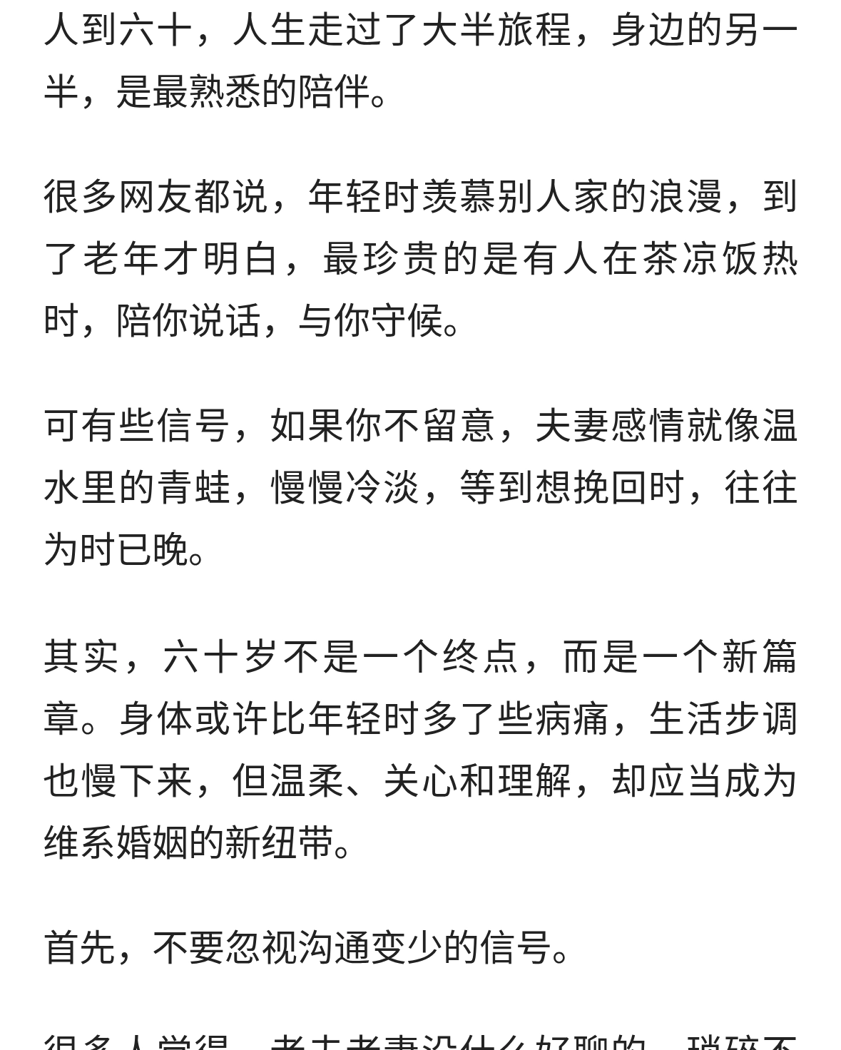 两性话题:男人过六十,千万不要忽视夫妻间的这些信号!