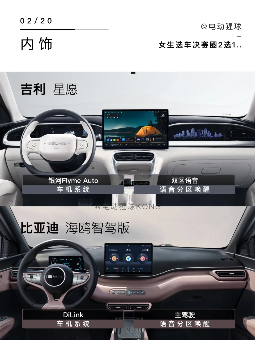 吉利星愿是Flyme Auto魅族系统,是手机时代卷过来的,语音助手能回微信,海鸥智驾版是自研的DiLink,系统稳定实用,科技党选星愿,够用党选海鸥
