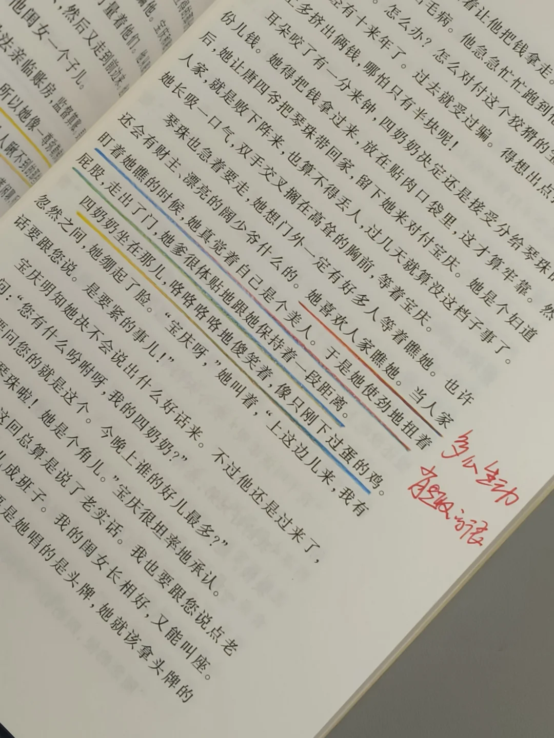 先生的幽默蕞是动人,不同于《围城》中高高在上略带调侃的冷眼旁观,而是俯下身拥抱人间烟火,带着悲悯与温情,让你在笑声里看见生活的褶皱与光芒。在《老张的哲学》里,市侩的老张、憨厚的王德,那些令人捧腹的市井对话背后,藏着对人性的深刻洞察;《正红旗下》的旗人生活,看似嬉笑怒骂,实则饱含对时代变迁的喟叹。