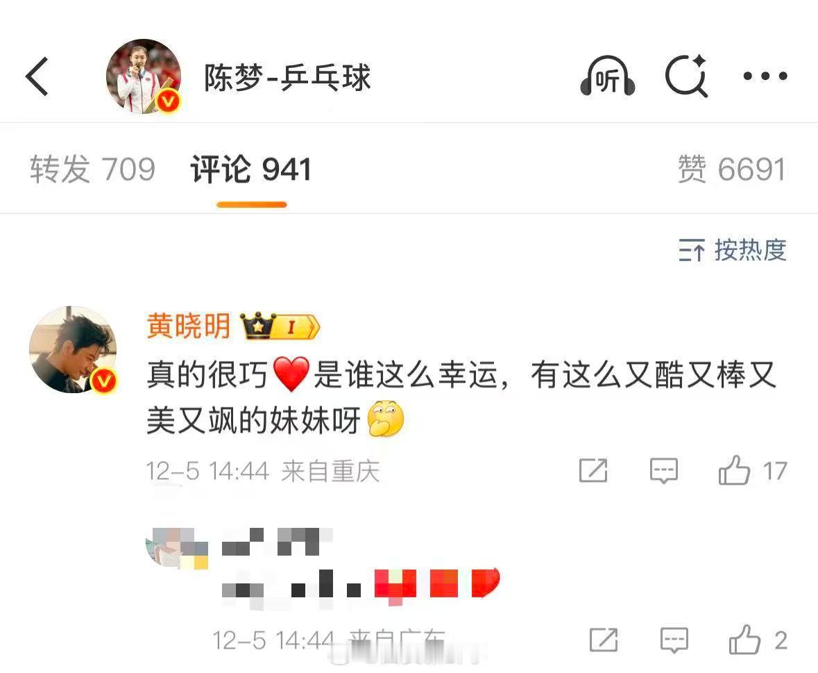 【黄晓明回应陈梦真的好巧】黄晓明回复陈梦好巧12月5日,在社交平台晒出和表哥的合照,并配文:“这不是巧了😉酷酷的妹碰到了帅帅的哥!”随后,在评论区回应称,“真的很巧,是谁这么幸运,有这么又酷又棒又美又飒的妹妹呀!”