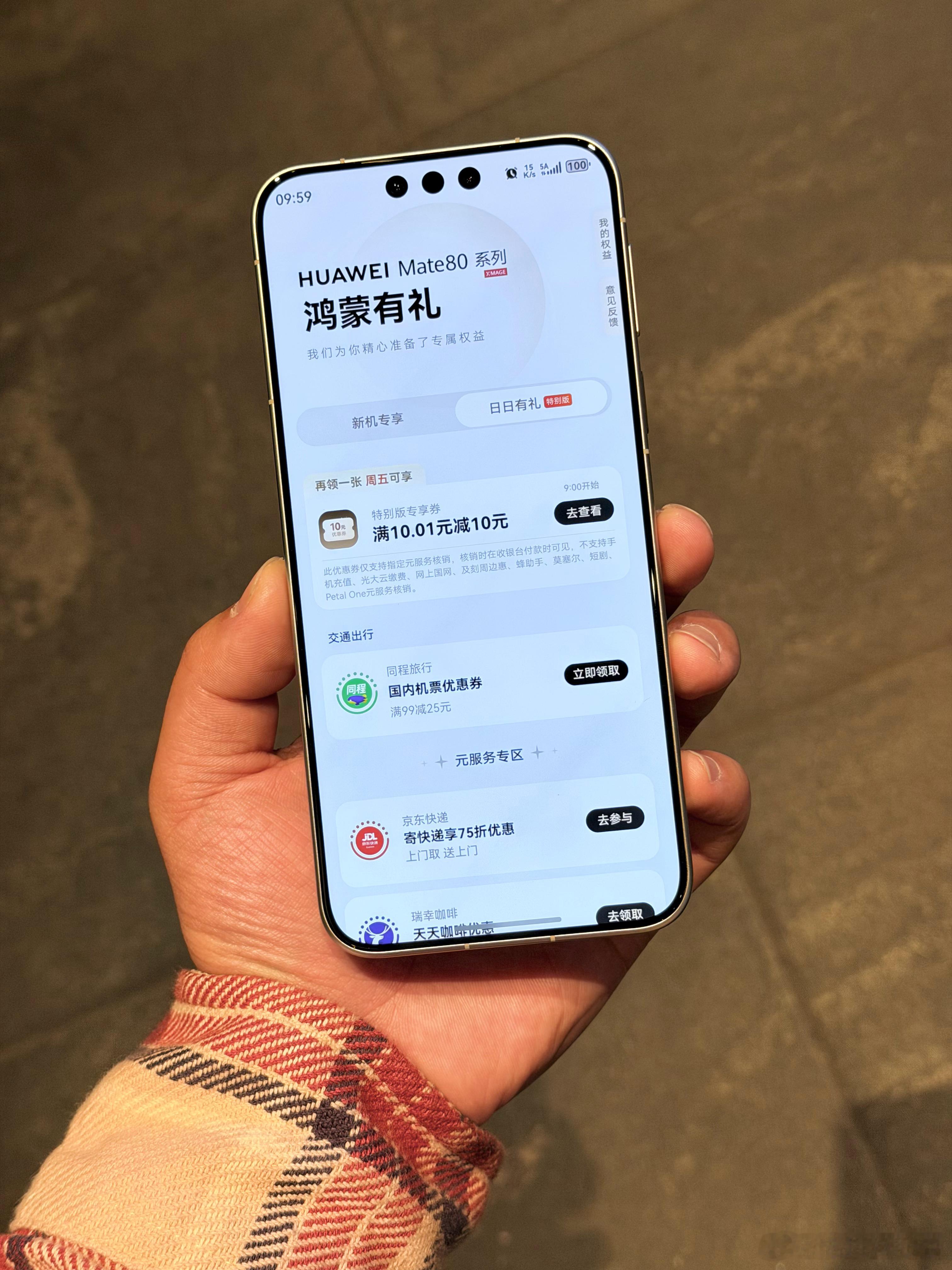 朋友们,又薅上华子的羊毛了,当你用上华为Mate80,你就会发现鸿蒙有礼是真送礼啊,各种优惠券,例如花九毛钱就能喝瑞幸,香不香