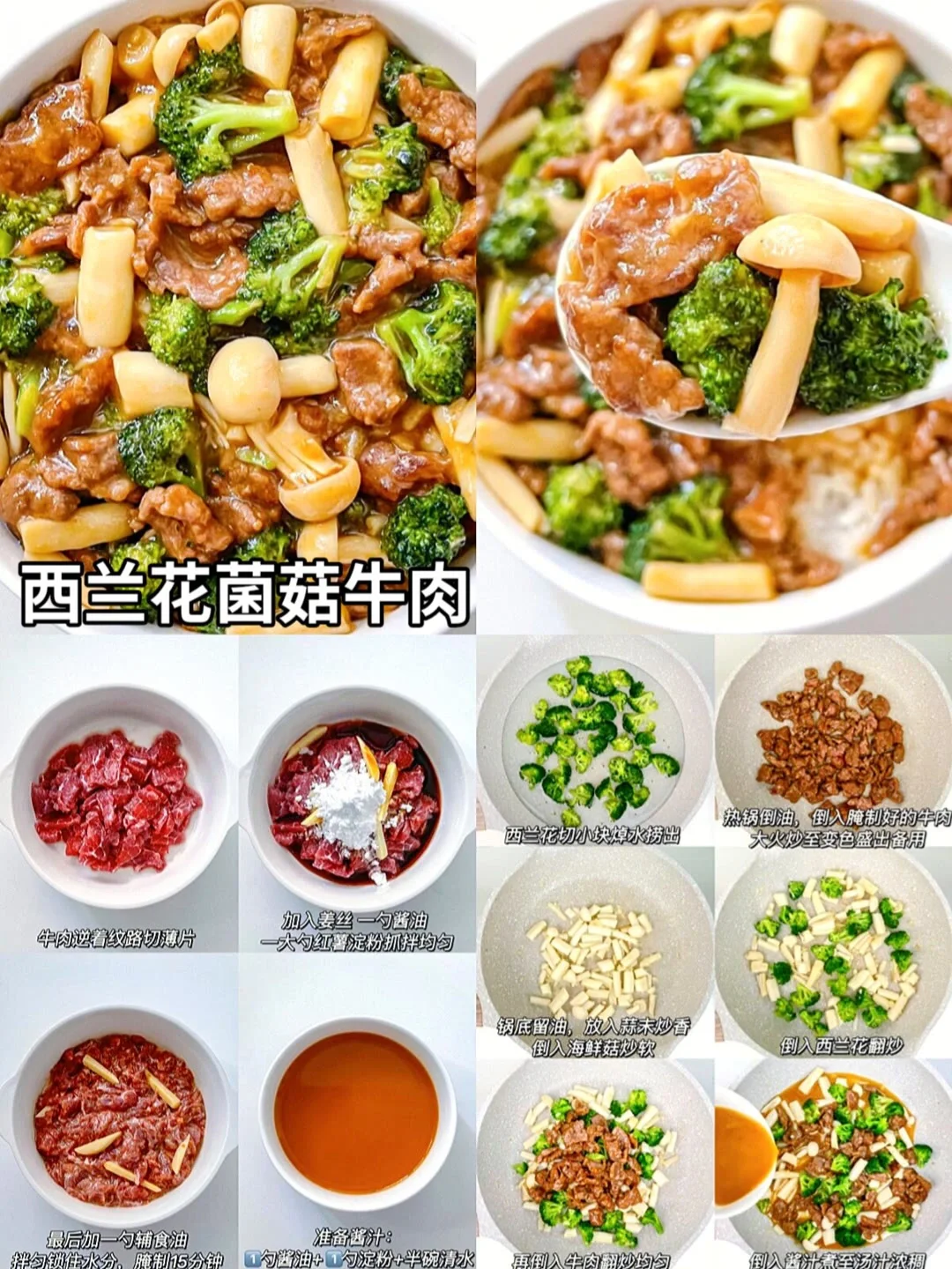 如图所示 : 一勺生抽 + 一勺老抽 + 一勺蚝油 + 少許糖和胡椒粉 + 一勺淀粉 + 半碗清水搅拌均勻。