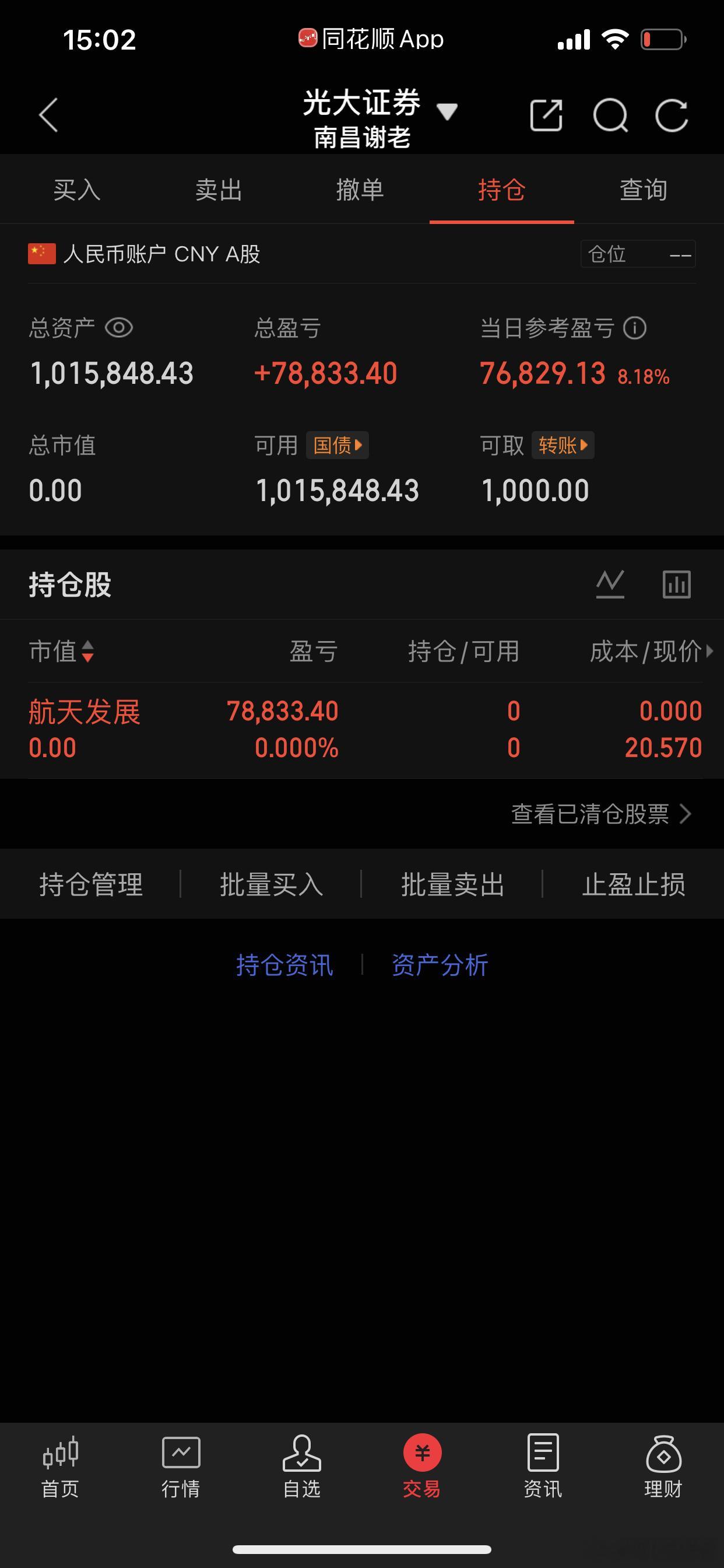 感谢航天大哥,让我回本,这个账户开了半个多月,第一次翻红,开就挖了深坑,好在顶住了压力,都是10倍路上的毛毛雨,猛干就对了都不知道咋就空了,不过也知足了,下午金融拉的时候跑了一半,怕被拉爆,炸板的时候跑了,不是因为不看好,是因为想低吸,想等一个急刹车再低吸,马上回封,没机会了,那就算了。最后分享一下航天大哥的操作图