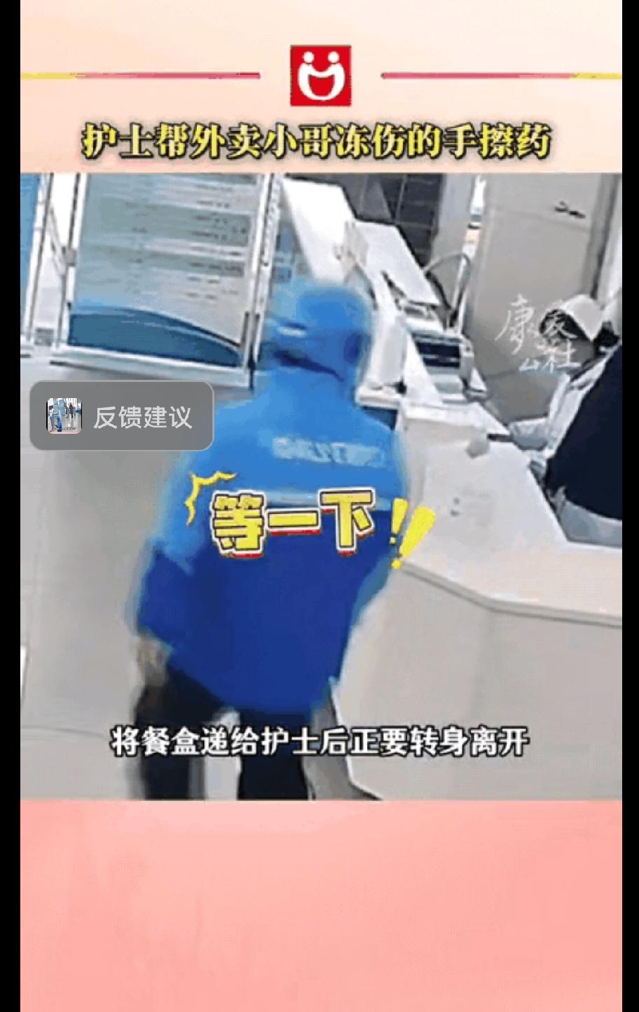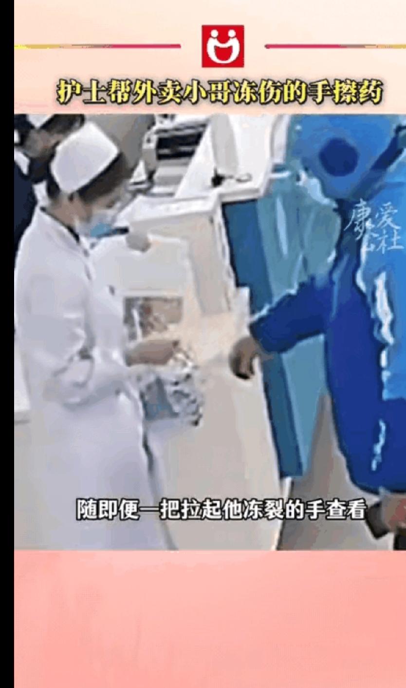 破防了! 护士叫住送餐小哥, 他以为要挨差评,没想到等来的是满手药膏和一双粉色手套,这才是成年人最戳心的互相救赎! 小哥手上的青肿开裂,是风里雨里握车把、搬餐箱磨出来的劳损,护士看在眼里疼在心里——她懂这份奔波的不易,就像别人懂她值夜班的疲惫。没有惊天动地的善举,只是一份膏药的心疼、一双手套的惦记,却把“我懂你”三个字藏得明明白白。 生活从不会饶过谁,但人与人之间的共情,能把硬邦邦的日子焐得软软的。 不是只有惊天动地才叫温暖,这种陌生人之间的惺惺相惜,才是人间最实在的光。 你有没有被陌生人的小善意暖到过?来评论区说说你的暖心瞬间~ 暖心瞬间 成年人的互相体谅