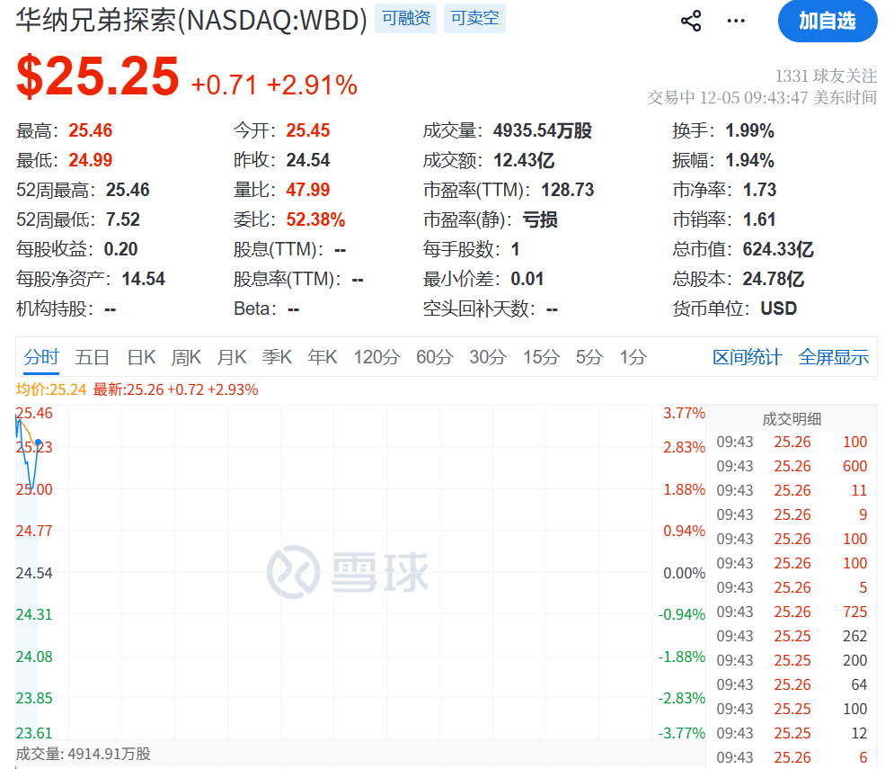 受此消息影响,Netflix股价下跌,而华纳兄弟股价上涨。