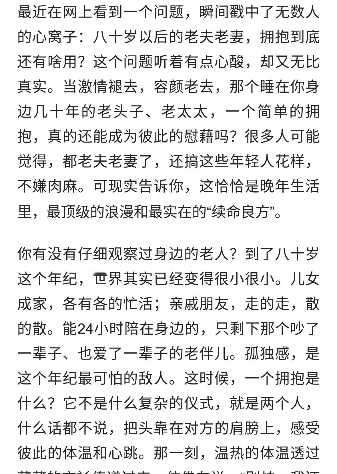 八十岁夫妻的拥抱,是晚年最好的“续命良药”。