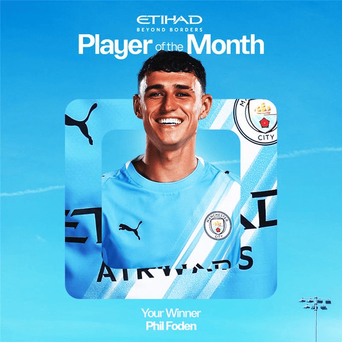虎扑12月06日讯曼城官方公布了11月球迷票选的队内最佳球员,英格兰攻击手菲尔-福登当选。