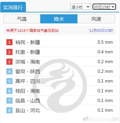 【干燥少雨】今天13-20时的逐小时降水榜,连续8个时次均不到10个站上榜,甚至17时、18时、20时,都只有3个站点上榜,凑不齐一桌麻将,只能斗地主了。干燥少雨的情况要等到12月中旬,才会有变化。