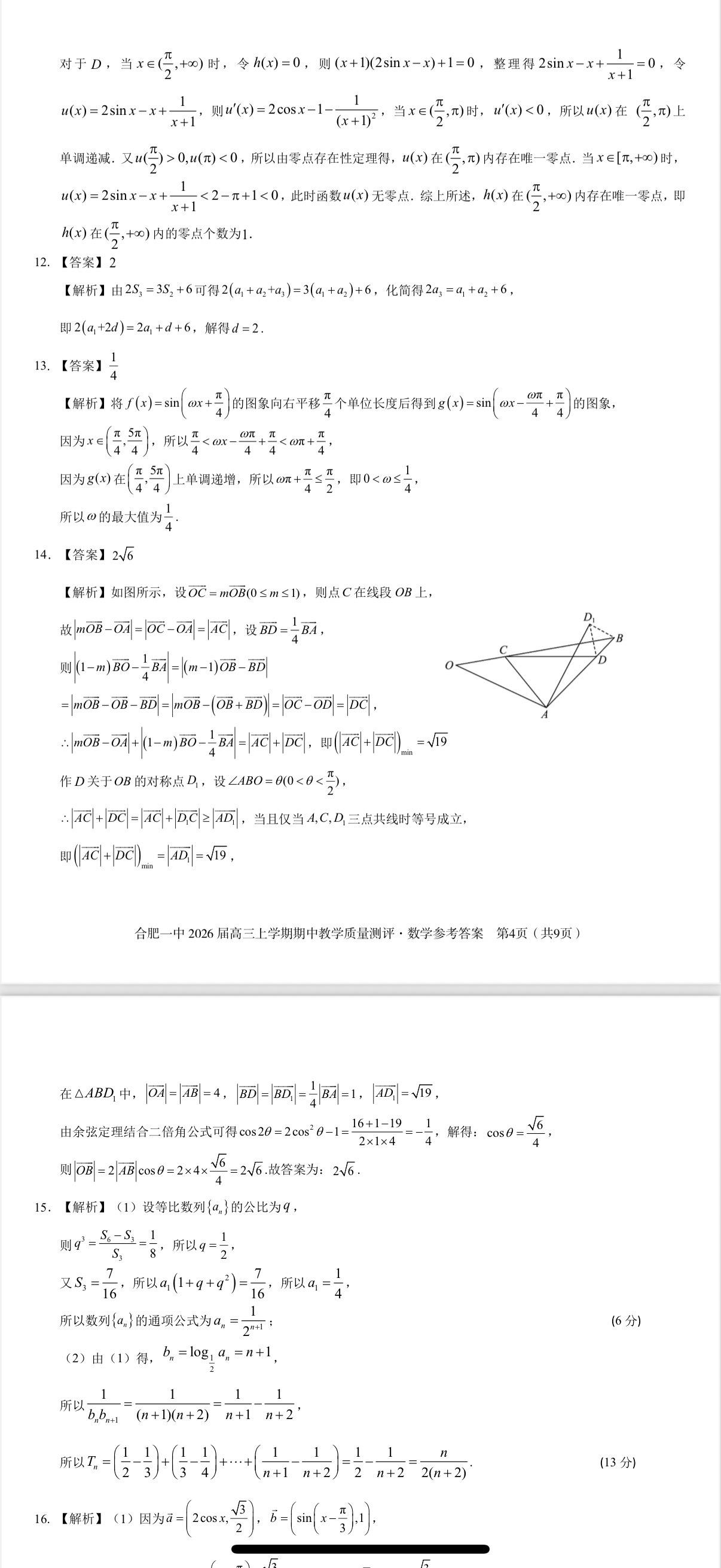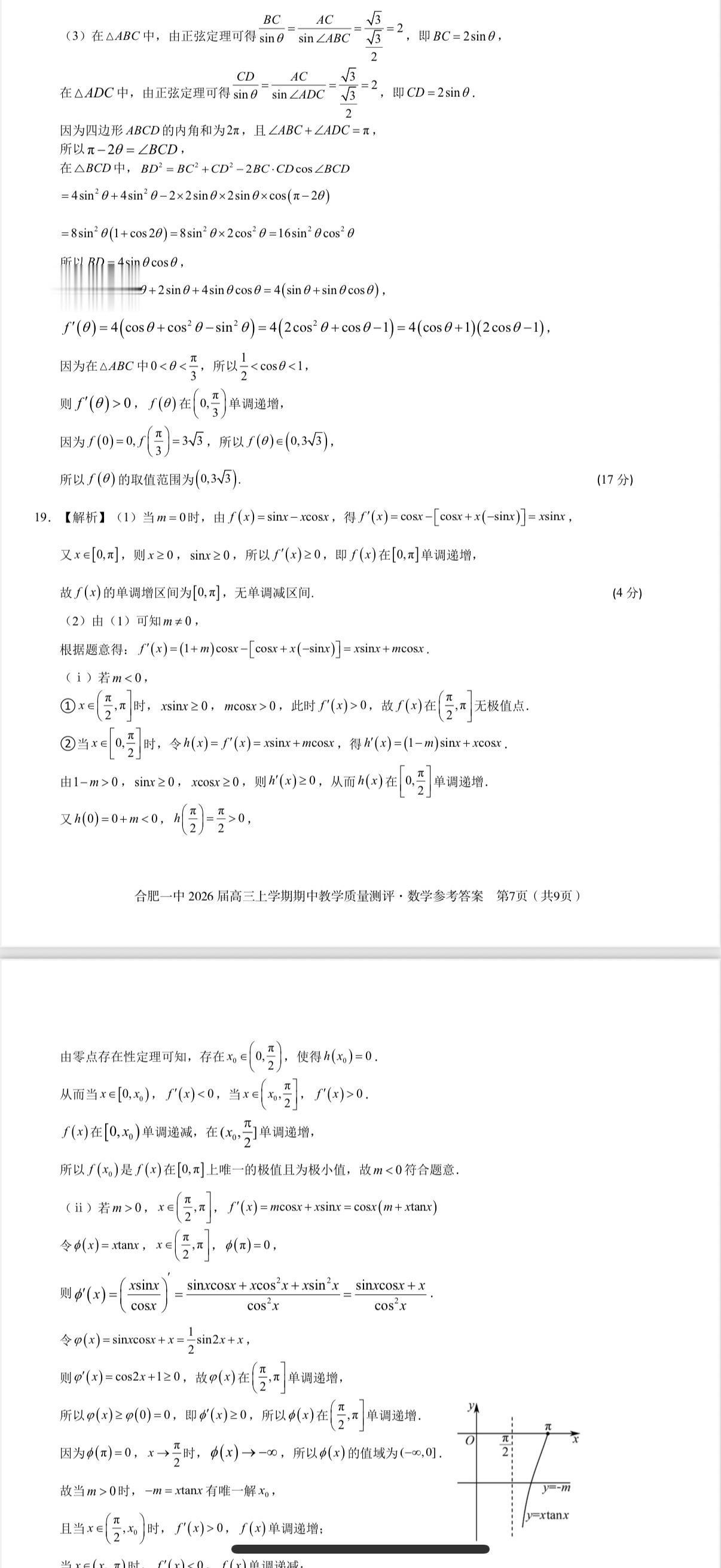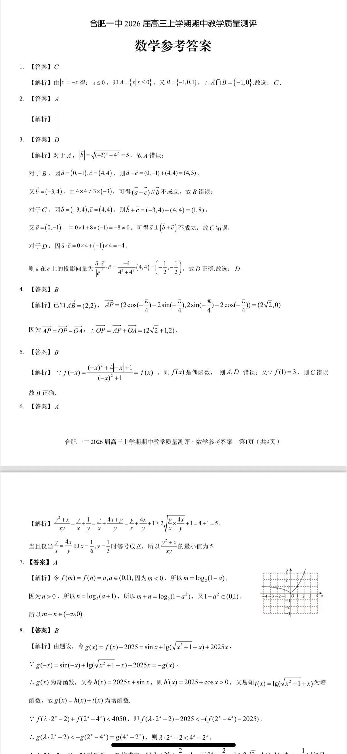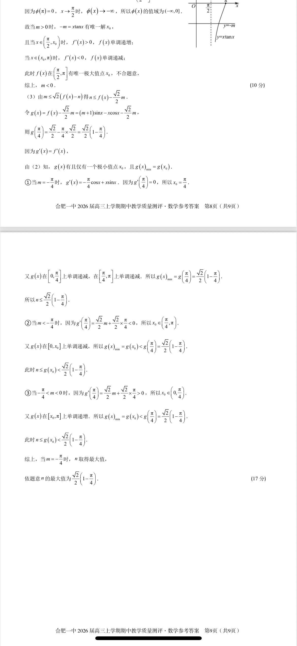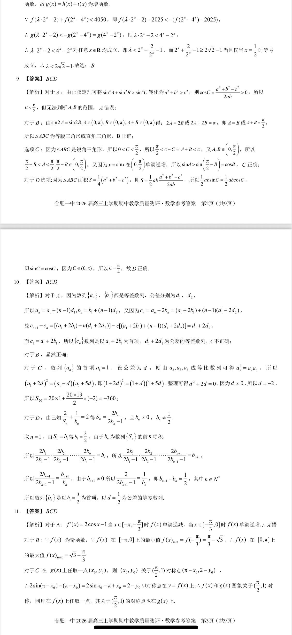 合肥一中2026届高三上期中考试数学试题及答案,省内大部分高中都参加江...