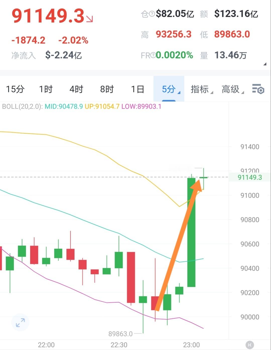 白间的到目标撤了,此时9W都未有效跌破,不反手追个短哆吃1200點都对不起这11