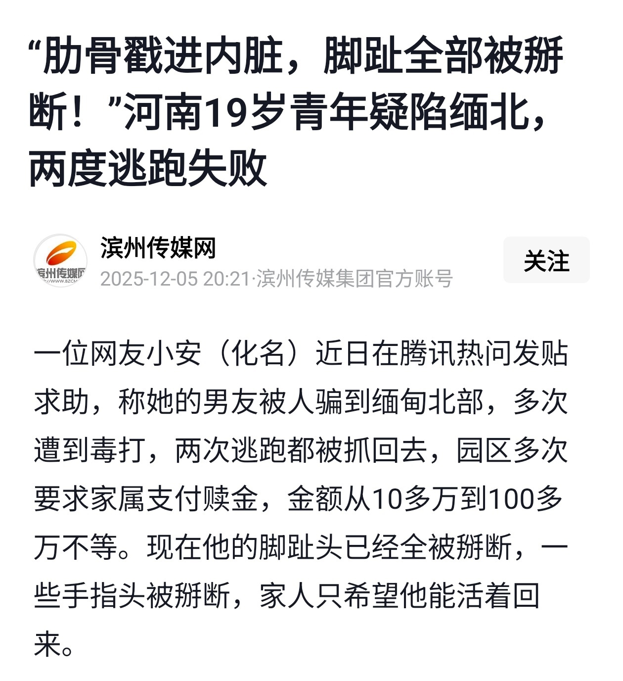 小伙缅北逃跑失败被掰断手指脚趾 缅北真的太可怕了。要记住,天上是不会掉馅饼的。如