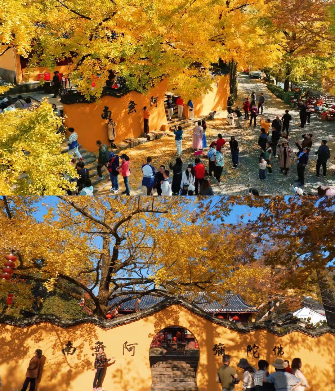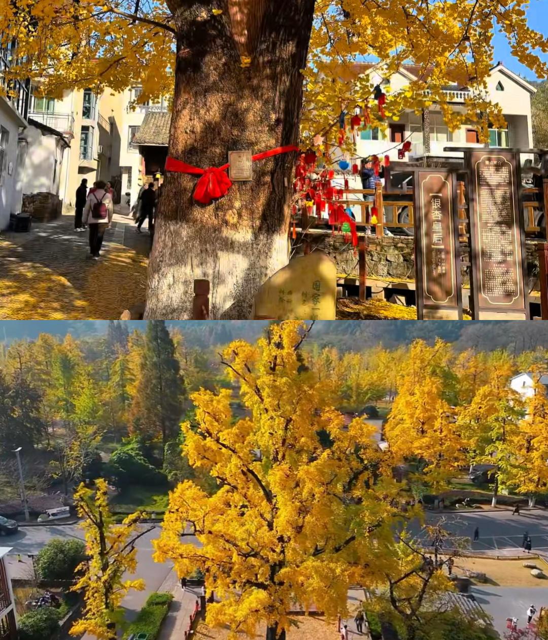 江浙沪2h可达的赏秋地,被誉为“世界银杏的故乡”,打卡正当时! 如果去不了云南腾冲,那就来湖州长兴八都岕(kǎ),很多人会读成jiè。 这里被誉为“世界银杏的故乡”,3万余株原生态古银杏延绵数十公里。 其中百年以上的古树就有3000多株,满谷金黄,一眼望不到头,仿佛走进了金色的童话世界里。 最佳赏银杏期为11月中旬至12月上旬,此时银杏叶的变黄率可达 90% 以上,错过再等一年。 坐上开往秋天的列车,一路钻进银杏林深处,1300多岁的银杏王枝繁叶茂,黄叶片在阳光下闪着光,空王教寺内“千年银杏皇后”与古寺黄墙相伴,脚下是成片的黄金海,古风照片一秒出片。