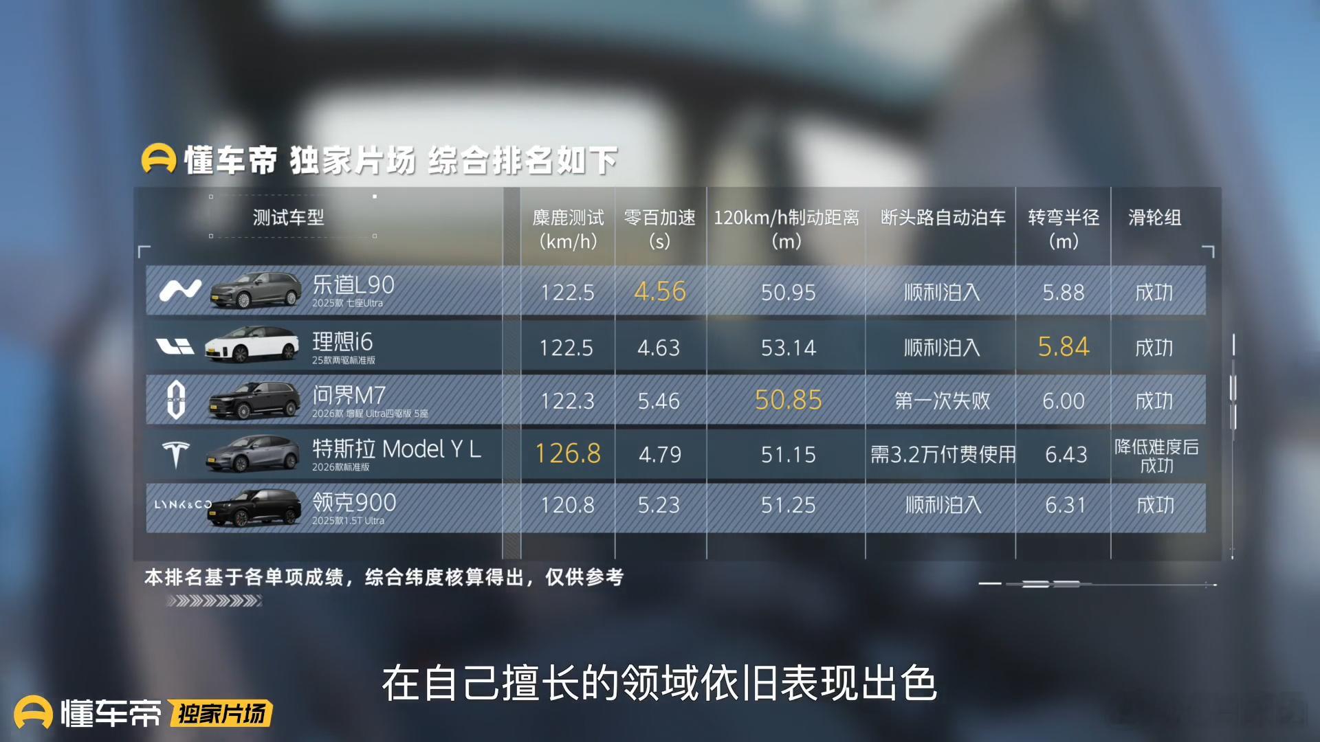 刚看到懂车帝做的30万级SUV横评,乐道L90表现不错啊,全场价格最低,成绩如下:▷ 零百加速 第1▷ 120km/h刹车 第2▷ 噪音表现 第2▷ 行驶能耗和续航达成率 第2▷ 哨兵模式能耗 第1▷ 腿部空间 第2,头部空间 第1▷ 补能速度……这个就太欺负人了总体来看,就是能力全面,性价比很高。