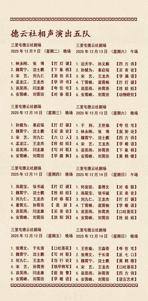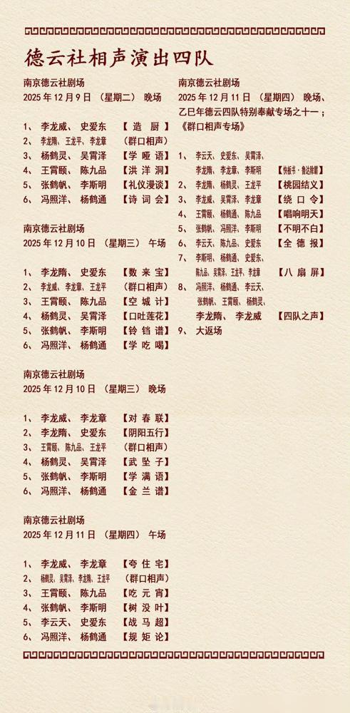 好么,原来纲丝节缺失的节目单在这等着哪!啧啧啧~果然天津德云社才是老郭亲生的。待遇就是不一样! ​ [捂脸] ​ 这话说的,有点意思。但也点出了一个现象。德云社的资源调配,确实值得琢磨。 ​ 天津德云社这场评书专场,阵容太硬了。郭德纲、高峰、阎鹤祥这些角儿都上了。尤其是老郭亲自压轴说评书,分量不一般。 ​ 相比之下,纲丝节主会场的节目单,当时还被一些粉丝觉得“不够看”。原来惊喜藏在这儿。 ​ 这可不是简单的节目安排。背后是德云社的发展策略。天津是曲艺之乡,老郭把精锐力量放在天津,有深意。这是在巩固大本营,展示传统曲艺的根。 ​ 再看看其他队伍。张九南、杨九郎去一队和“副总”栾云平混搭。二队轮值哈尔滨。四队在南京搞群口。五队还进了新人。 ​ 整个德云社就像一盘棋。角儿们在不同场地流转,既能带动各地票房,也能磨练新人。郭德纲坐镇天津评书专场,是在给传统技艺站台。 ​ 评书在德云社的演出里,不算最卖钱的。但老郭坚持要办,还带上这么多名角。这说明他看重的不只是票房。更是在传承手艺。 ​ 阎鹤祥说《三国》,高峰说《基督山恩仇记》。这都是考验真功夫的活。台下没十年功,台上站不住。 ​ 现在听相声,好多人都图个乐。但德云社没忘了老本。鼓曲社天津北京两边跑,评书专场也办得认真。这份坚持,挺难得的。 ​ 粉丝们总说“德云看角儿要趁早”。这话在理。演员拼的是舞台上的能耐。能耐怎么来?就是靠这样一场一场磨出来的。 ​ 有的社在流量里打转,德云社却在传统里深耕。路子不一样。长远看,根扎得深的,才能长得高。 ​ 这场天津评书专场的意义,已经超出了节目单本身。它传递了一个信号:德云社的底色,还是对传统艺术的敬畏。 ​ 角儿们勤勤恳恳跑小园子,就是最好的状态。不浮躁,练内功。这才是长久之计。 ​ [赞] ​