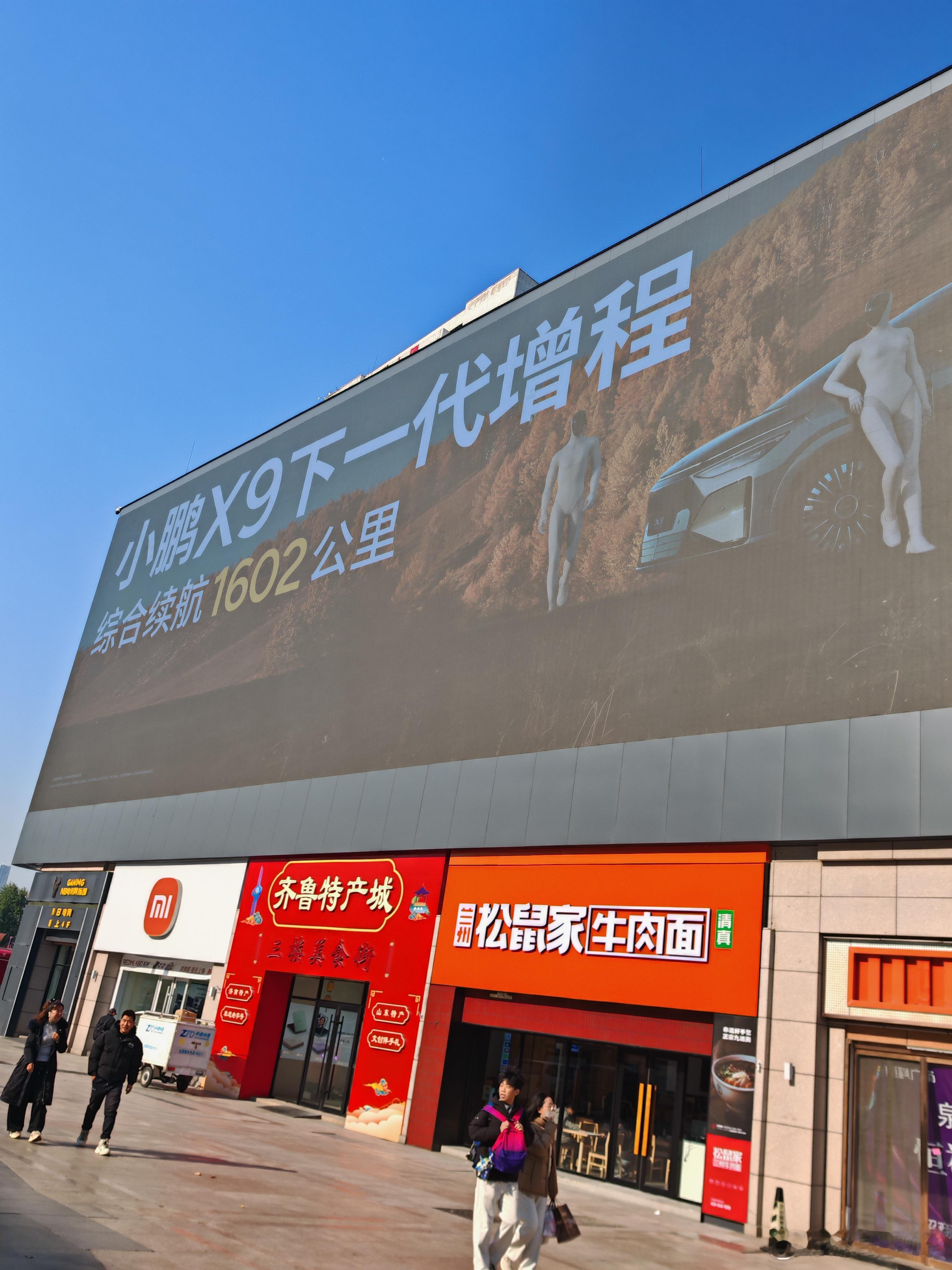 逛泉城路时偶然撞见小鹏X9广告,科技感直接拉满,路过的人都忍不住多瞅两眼~