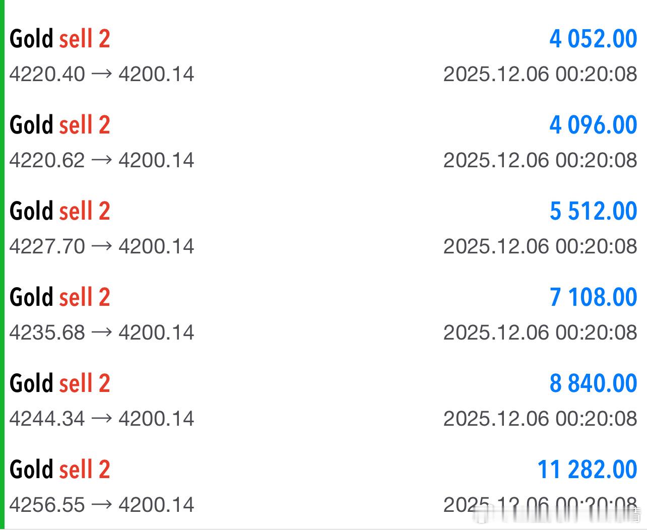 黄金空头并没有缺席,没有辜负各位的期望,也很庆幸各位没有放弃空头!黄金空头趋势抵达止盈位置,全部空单扭转乾坤,如愿在4200位置自动止盈。前面套空的痛苦,在此刻全部转化为喜悦和激动!那些黑粉不看好空头的,此时此刻已经变成哑巴!黄金现货黄金外汇黄金国际黄金伦敦金美原油