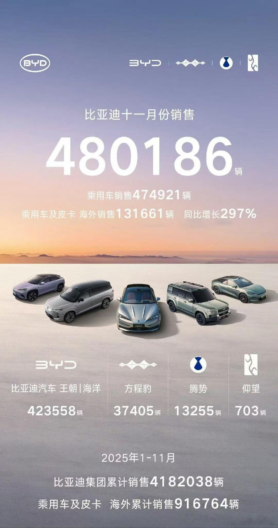 11月份,比亚迪海外销量13.1万台,长城总销量13.3万台。长城的销