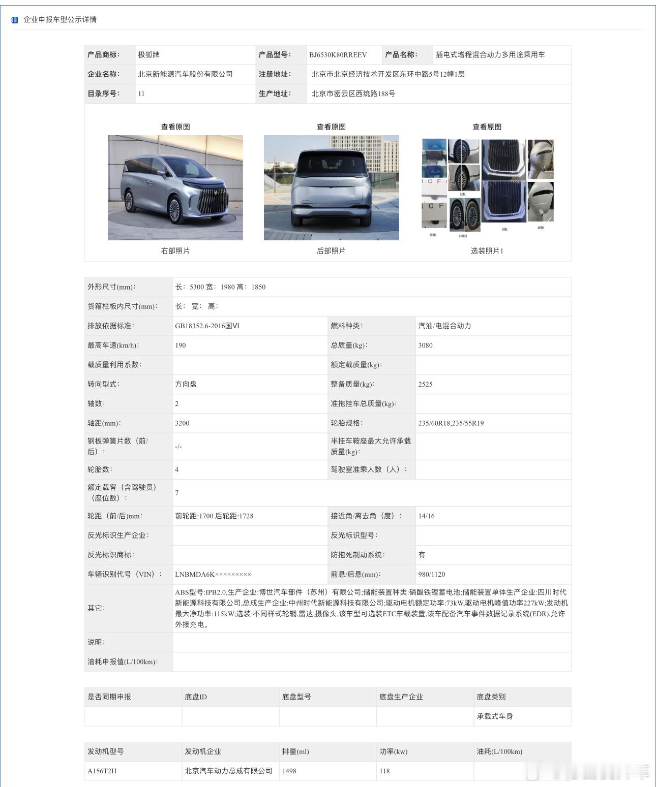 极狐全新大型MPV也申报了,这车外观很有张力、雕塑感,没有埃味,好评!