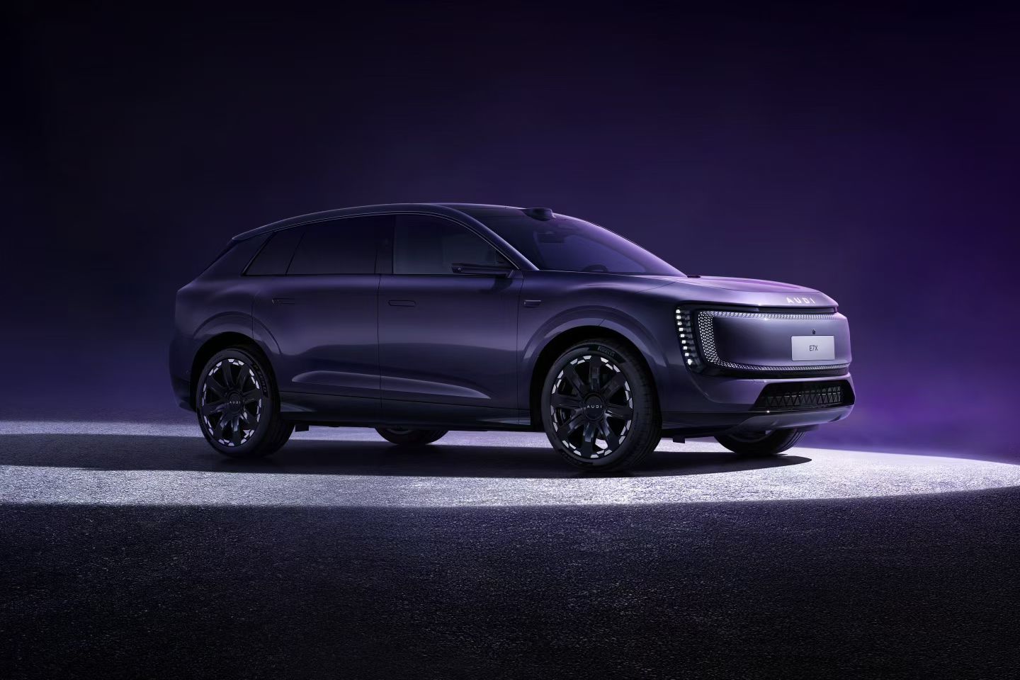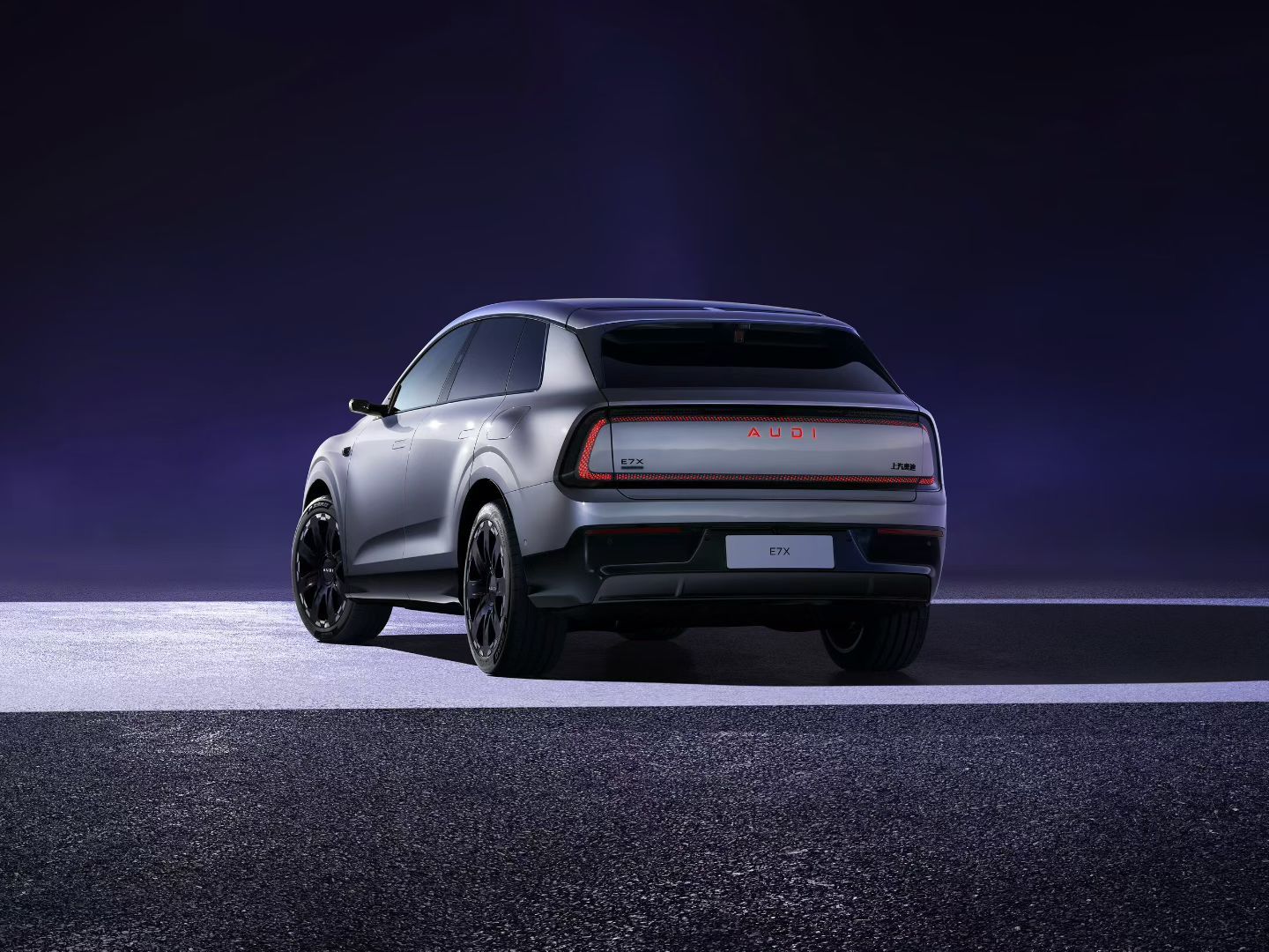 AUDI E7X ,上汽奥迪首款纯电SUV,用了E5的那套设计语言,整个视觉高度拉了起来,看起来也挺大气的。车身尺寸5049x1997x1710,轴距3060,提供了单电机和双电机版本,你们觉得怎么样 AUDI大v聊车 奥迪E7X