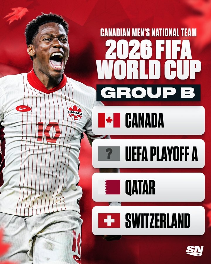 世界杯B组为:加拿大、欧洲区附加赛球队A、卡塔尔、瑞士