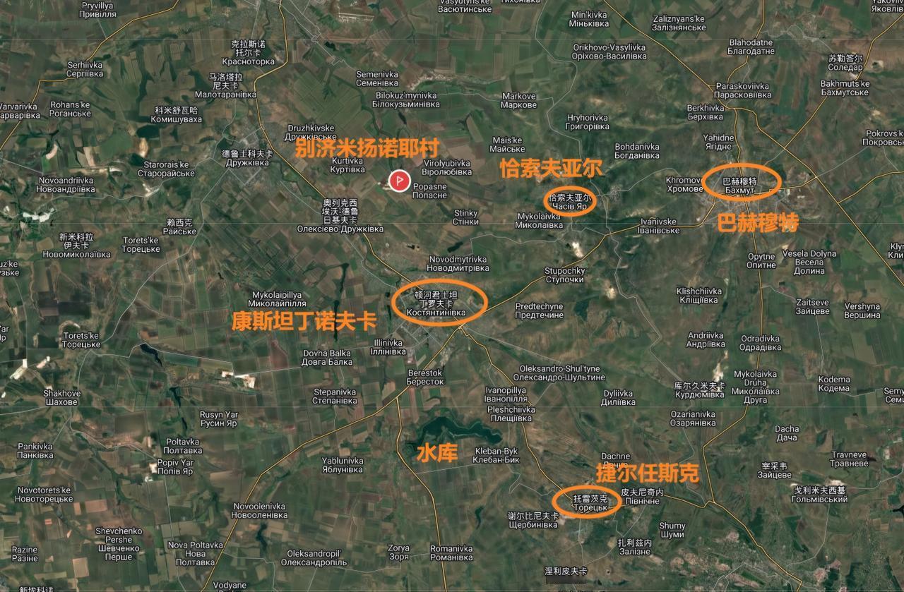 康斯坦丁诺夫卡方向,南部集群拿下了其北翼的别济米扬诺耶村,这个村不是很大,但是这个村丢了,再往南 就没有什么村庄,一大片田野直接到康斯坦丁诺夫卡。北翼包围越来越有特色了,这条翼看起来有点单薄,但是乌军一直不能切断。