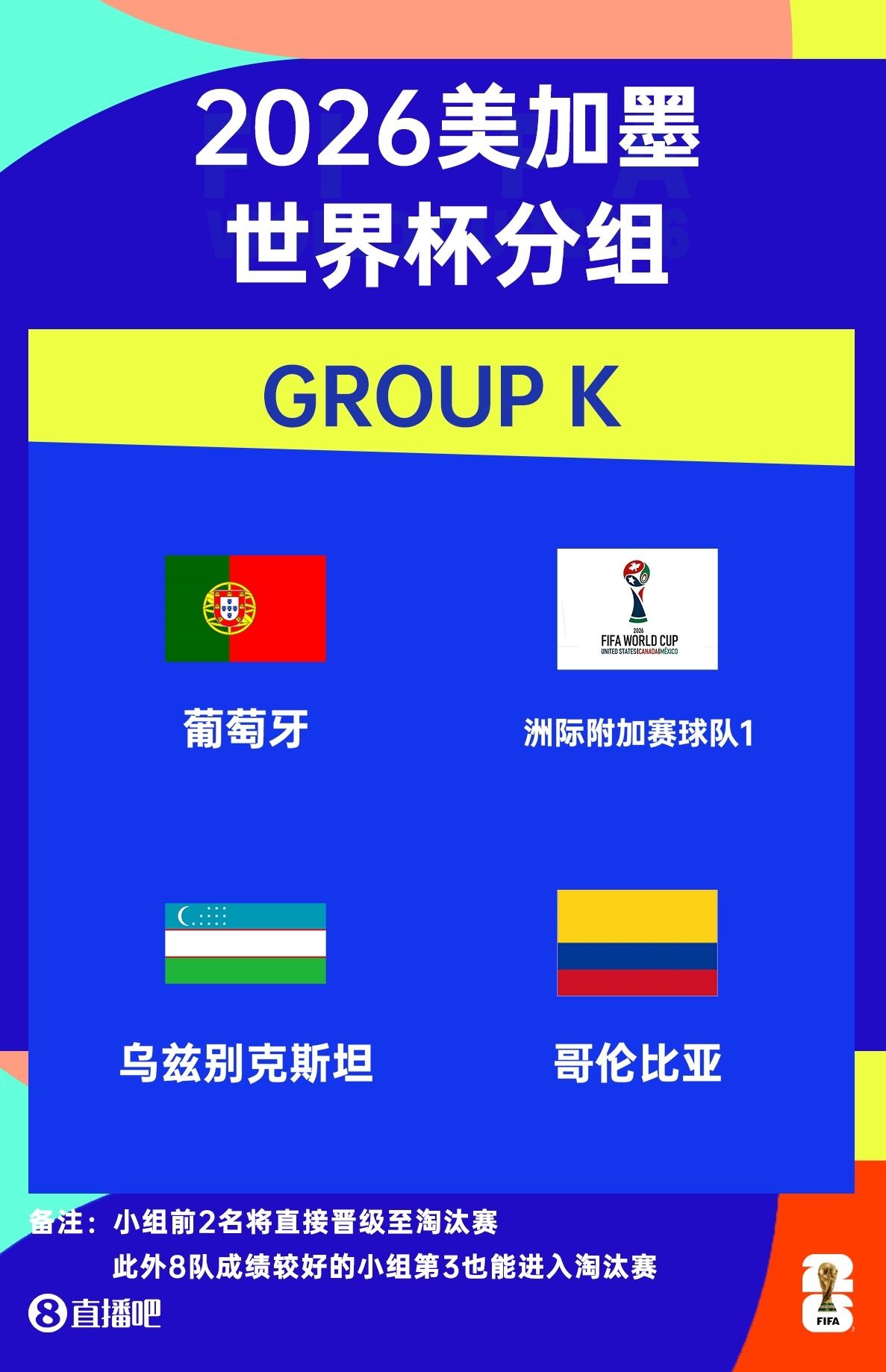 世界杯K组:葡萄牙、洲际附加赛1、乌兹别克斯坦、哥伦比亚
