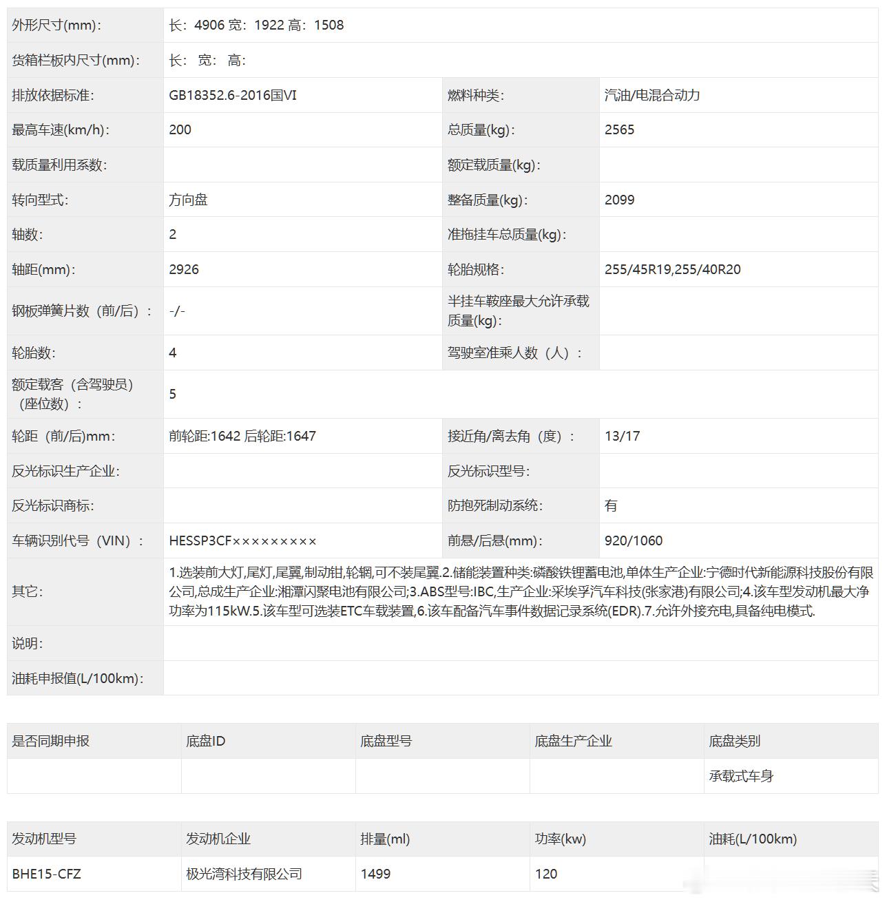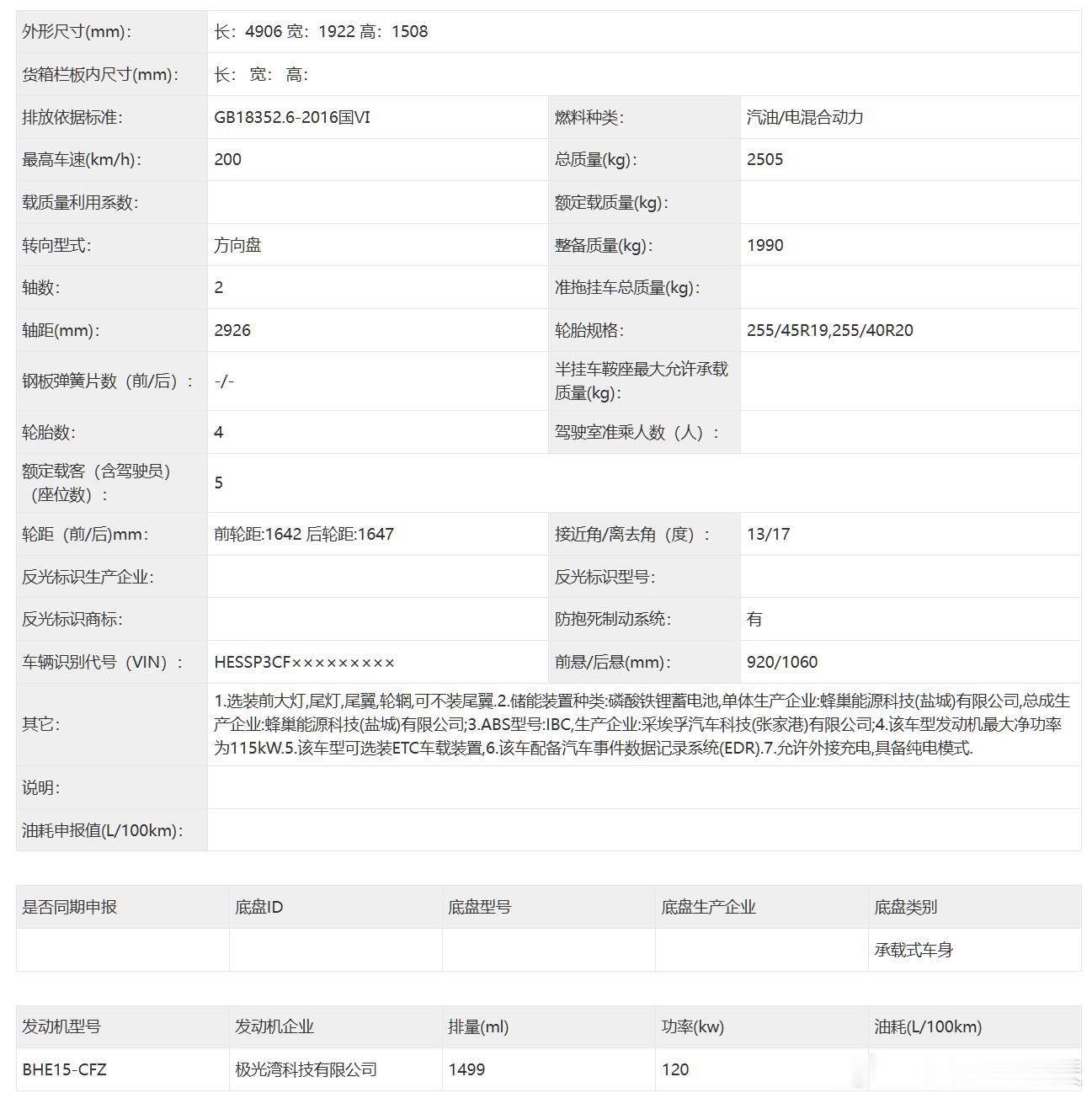 史上最大 smart —— 精灵6 EHD,亮相工信部第402批新车公告- 定位:中型插混轿车- 尺寸:长:4906,宽:1922,高:1508,轴距:2926- 电池:磷酸铁锂电池,分别是宁德和蜂巢能源电芯(估计是高低配)- 插混发动机:极光湾的BHE15,1.5T- 特殊选装:可以选装尾翼!(图5)没想到smart做一个4.9米长,轴距2.9米的轿车,smart逐渐变SMART大v聊车smart精灵6号