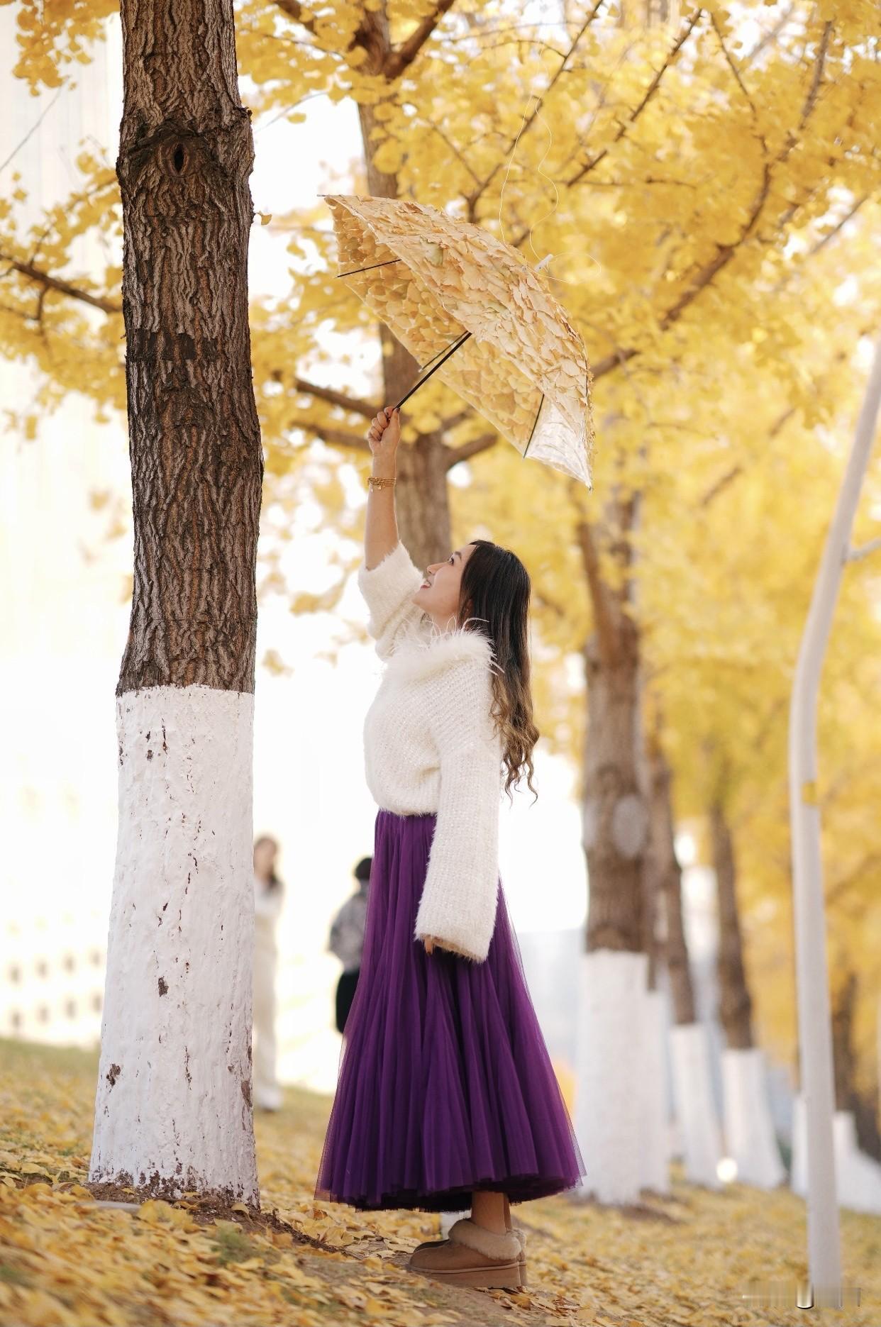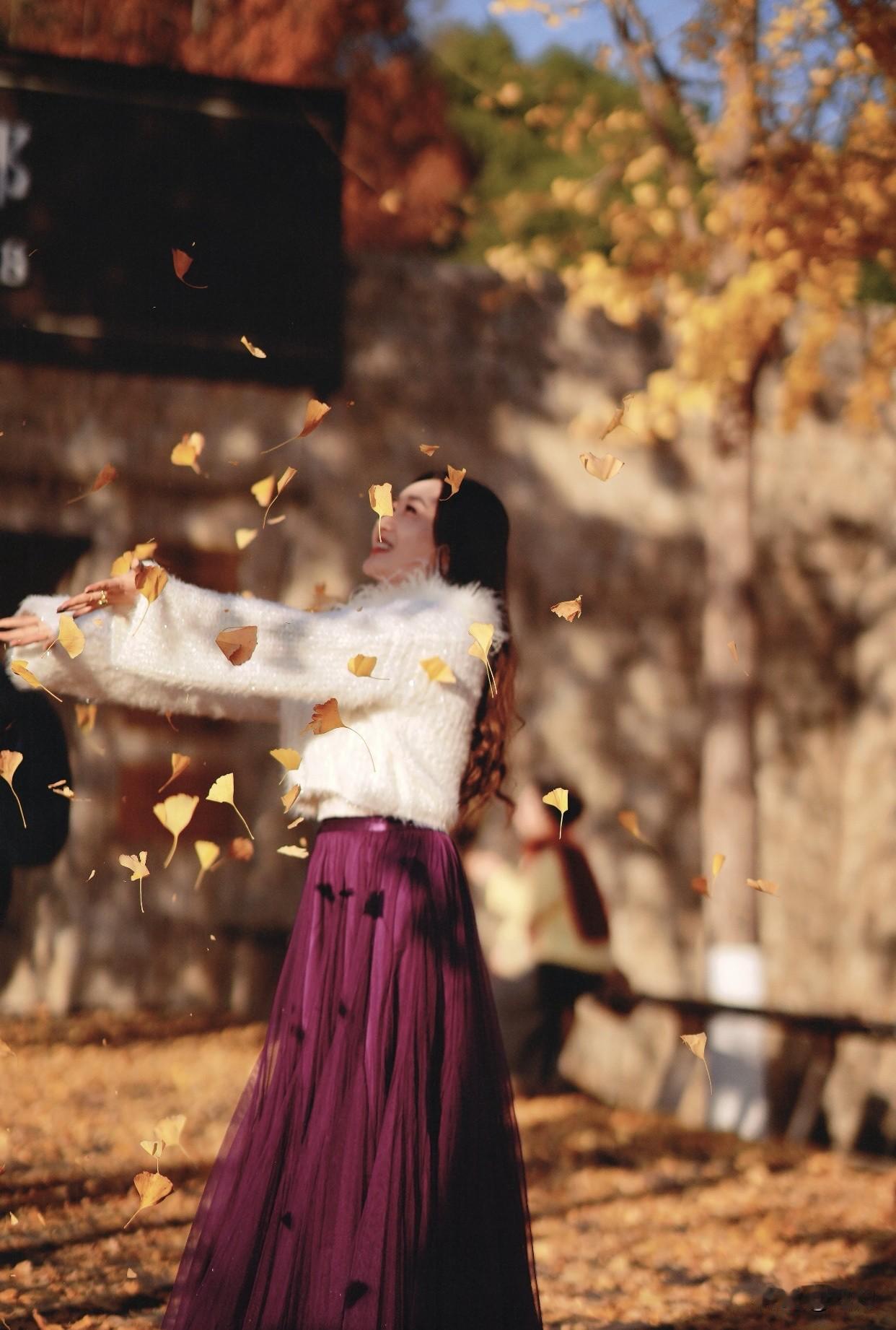 分享一下你随手拍下的照片秋风起,落叶舞,美人倚树思。