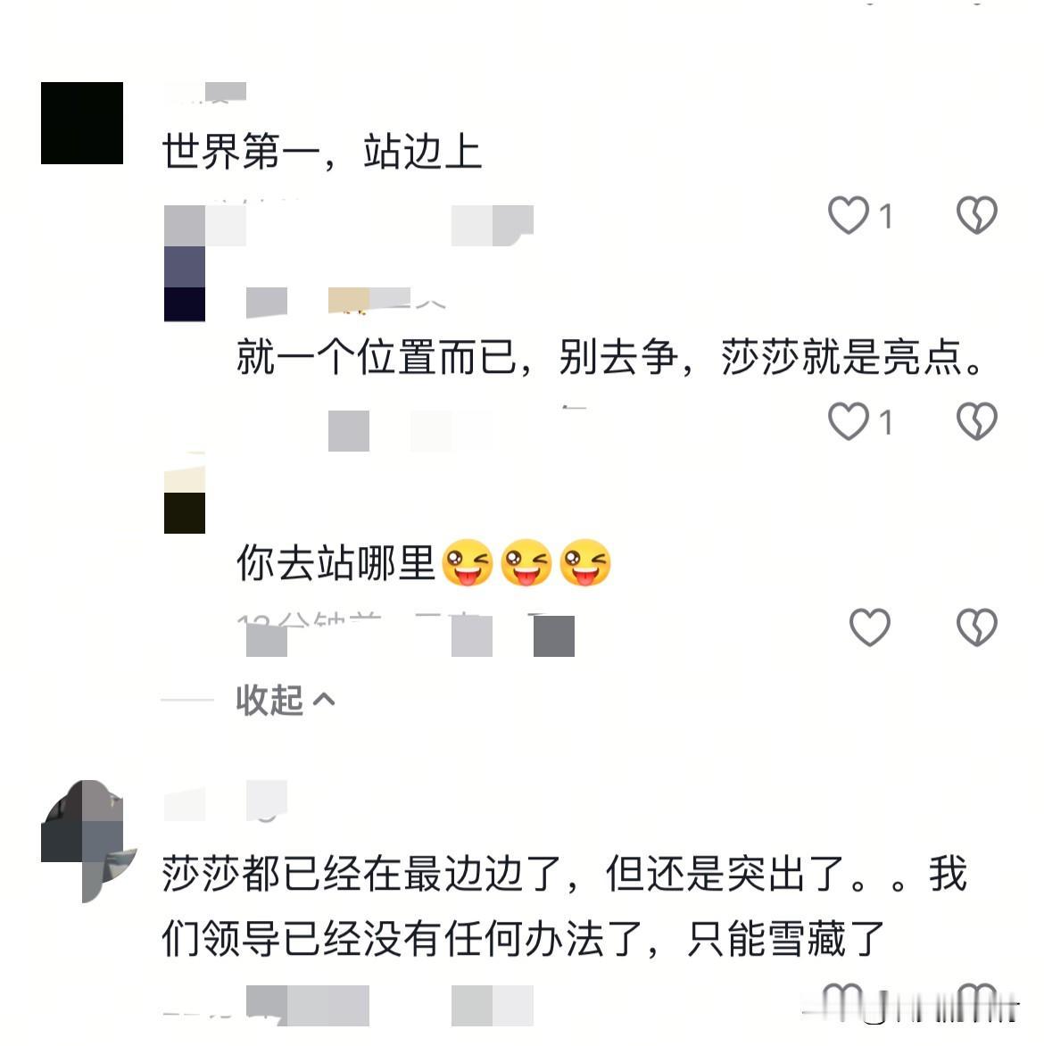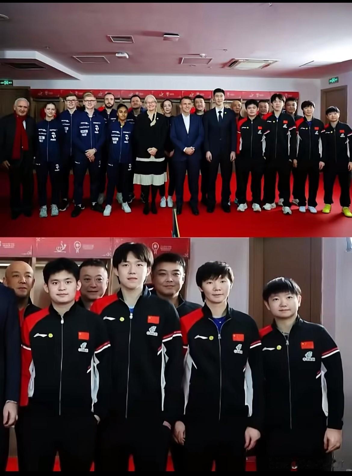 这种照片拍的真好。不要过分解读。 就是高个子站中间,矮个子站边上。拍合照不都是这样吗? 法国队小布站中间。中国队王楚钦王曼昱站中间。莎莎和栋栋矮一些站边上。这很正常。 林诗栋王楚钦王曼昱孙颖莎都非常好。看了好几遍。这几个孩子真好! 后面是王皓马琳肖战三个教练挨着肖战教练的那个教练不认识。