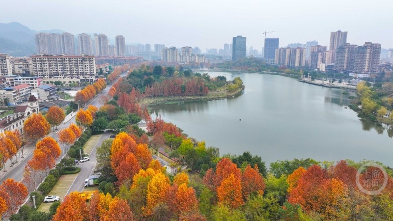 12月5日,重庆市垫江县牡丹湖湿地公园层林尽染,红、黄、橙、绿交织如画,给冬日的城市增添了几分色彩。近年来,当地建成大大小小的湿地公园、口袋公园和小游园约60个。
