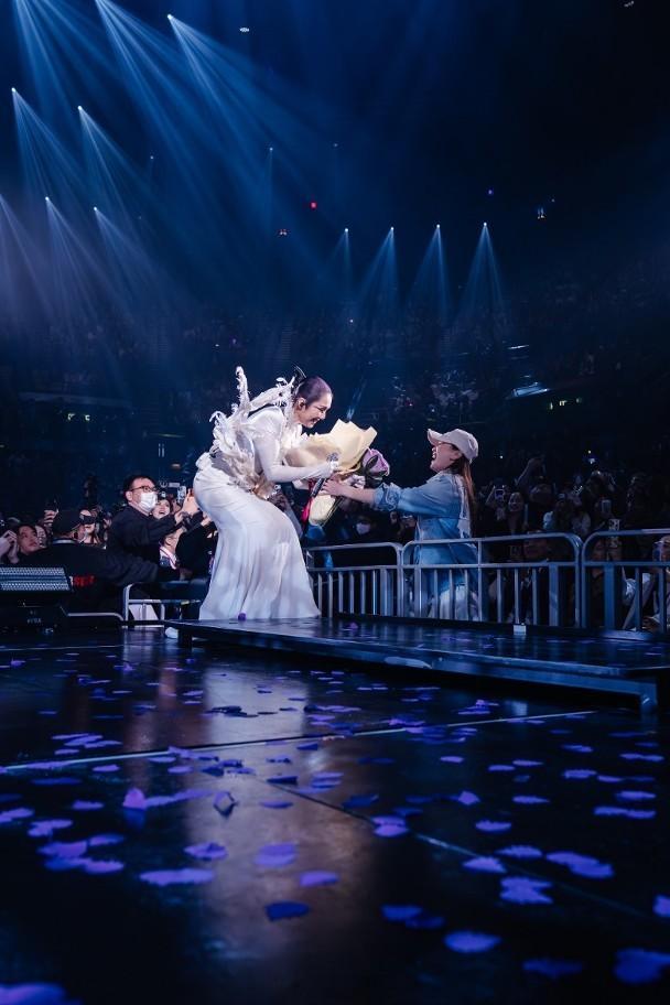 東方日報C1:楊千嬅不捨3度落淚:好感恩可以返嚟歌手楊千嬅一連6場紅館演唱會前晚圓滿落幕,近年她因長駐內地搵錢而遭部分歌迷離棄,2022年亞博騷更面臨「零贊助」困境。而她是次相隔7年再踏紅館亦有不少考驗,雖未受大埔火災影響而押後,卻發生信號故障等事故,她於尾場格外感觸,形容這條「回家的路」真的好長,更忍不住哭崩。《楊千嬅Live MY LIVE 2025》紅館演唱會前晚來到尾場,全場爆滿,開騷前全場為大埔宏福苑火災罹難者默哀一分鐘,其後千嬅以《舊地》、《最好的債》和《笑中有淚》揭開序幕,連同Encore 17首歌,全場共唱了42首歌,至凌晨12時15分才超時結束,打破其香港演唱會紀錄,成為唱得最多歌的個唱,事後更獲網民大讚是歷年最高水準的演出。千嬅連唱25首歌,至Encore環節才講話,期間多番哽咽,最後還是3度落淚,她一開口打招呼已喊:「我真心好感恩可以返嚟……死喇呢次,終於做完6場演唱會,上天畀咗份好大嘅功課畀我,感謝團隊陪伴完成呢份功課,非常不容易,多謝歌迷陪伴。」她感恩音樂路上讀了多間「名校」,所以獲得很多好作品:「一世流流長,總會遇到好多黑暗和快樂,不停循環,但陪伴好需要,找到自己嘅肯定和勇氣,好多謝每一個陪伴嘅朋友。」她又指是次開騷並非有甚麼要慶祝,哽咽說:「係好耐冇見嘅……死喇大鑊喇!好耐冇見嘅朋友一齊Gathering,同埋呢30年一齊打拚嘅……冇咩都係唱歌先,我講唔到嘢。」其父母、老公丁子高及13歲兒子丁進諾均是座上客,千嬅向着台下的兒子說:「好耐冇見,I Love You!」又多謝丁子高陪伴她重建自我價值。她指演唱會的歌鼓勵到她,想分享給歌迷,認為每個人都要守護自己的心及朋友,一起度過困難和黑暗:「尾場,離開不是結束,忘記才是結束,希望有能力繼續努力唱好啲歌……音樂留喺你哋心裏面。」超時唔理罰幾多千嬅騷後受訪時自認多愁善感,看到家人、朋友和支持多年的歌迷捧場特別感動。問到受大埔火災影響而更改流程,是否很大壓力?她說:「呢件(火災)係好大事情、好大感受、好傷痛,以最快速度處理情緒,共識將音樂變成一種淨化,希望分享正能量,直接捐助災民係最重要及最踏實。」另外,千嬅自爆在台上不慎弄傷左膝,原來她看見小孩很得意,踎低起身時聽到膝蓋「咔」一聲,估計是拉傷。她又表示開騷期間因不想影響兒子返學而暫住酒店,所以很久沒見。完成是次演出後,她未有計劃開Part 2,打算先休息,重回家庭陪伴家人及執屋。而對於超時罰款,丁子高回應:「冇睇罰咗幾多錢,最緊要千嬅同歌迷共度一個開心嘅晚上。」千嬅多次抿着嘴巴強忍淚水,努力把歌唱好。老公丁子高與兒子捧場。千嬅有花收,喜上眉梢。歷盡艱辛才重返紅館,千嬅感觸良多,感激歌迷不離不棄。千嬅來到尾場依依不捨,Encore時唱足17首歌才離開。千嬅