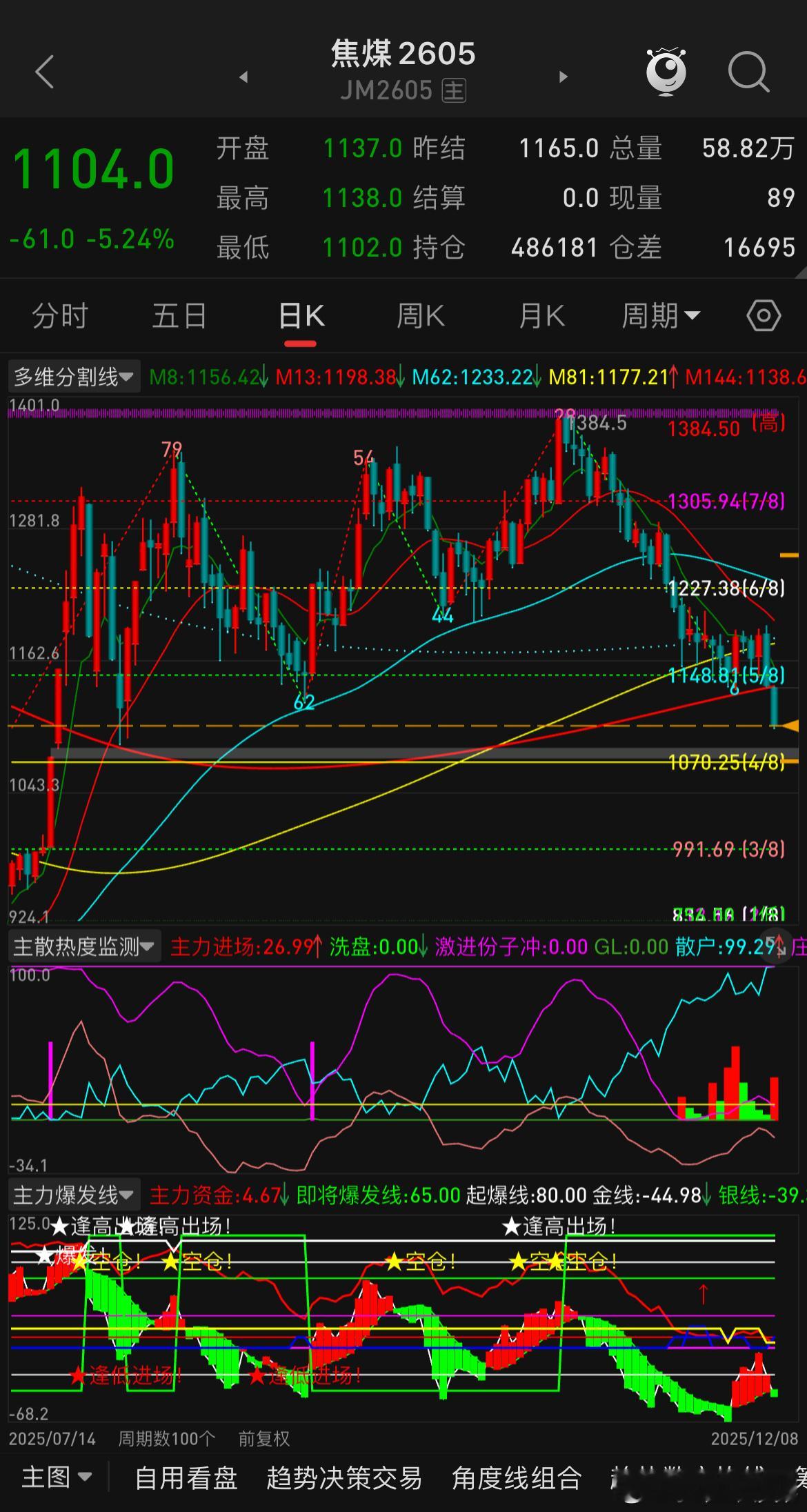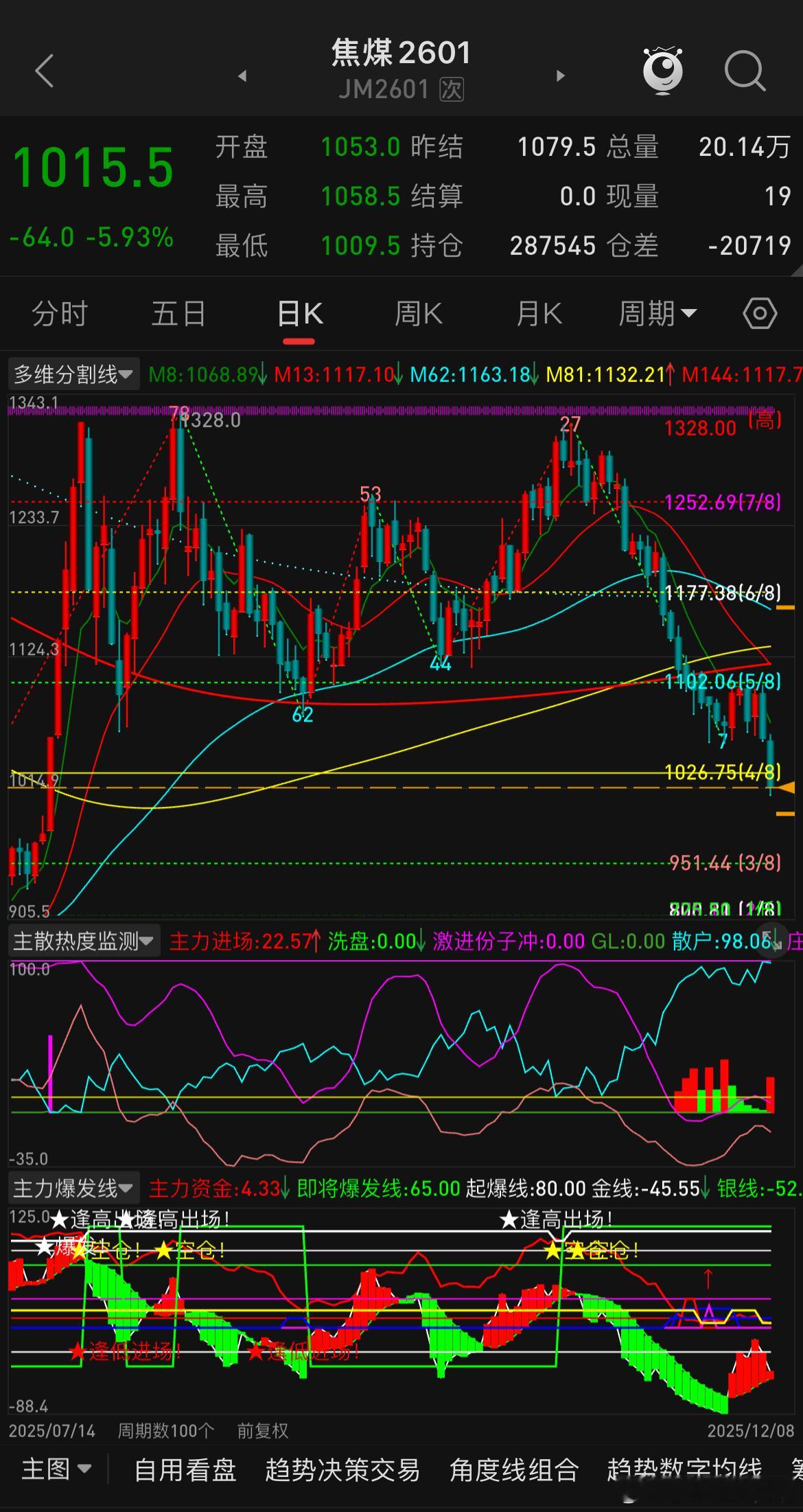 焦煤完成移仓换合约的过程市场杀了一波,市场很多品种也存在这种情况,焦煤01合约没能站上1100附近位置,再次回撤到千点附近,几大机构空头仓单慢慢移到了05合约,焦煤05合约估计还要震一震,不会那么快有什么反弹力度。反内卷的风已经散了,市场暂时没有什么小作文来拉焦煤,又回到了资金博弈的阶段,整体还是偏空一点,毕竟焦煤之前阴跌了大半年的时间,不是反内卷资金炒作的话还在低位趴着,焦煤不建议大家放仓位了,多空都不太好做,多数工业品估计慢慢会进入杀多阶段,消息炒作的行情一般不长久。焦煤