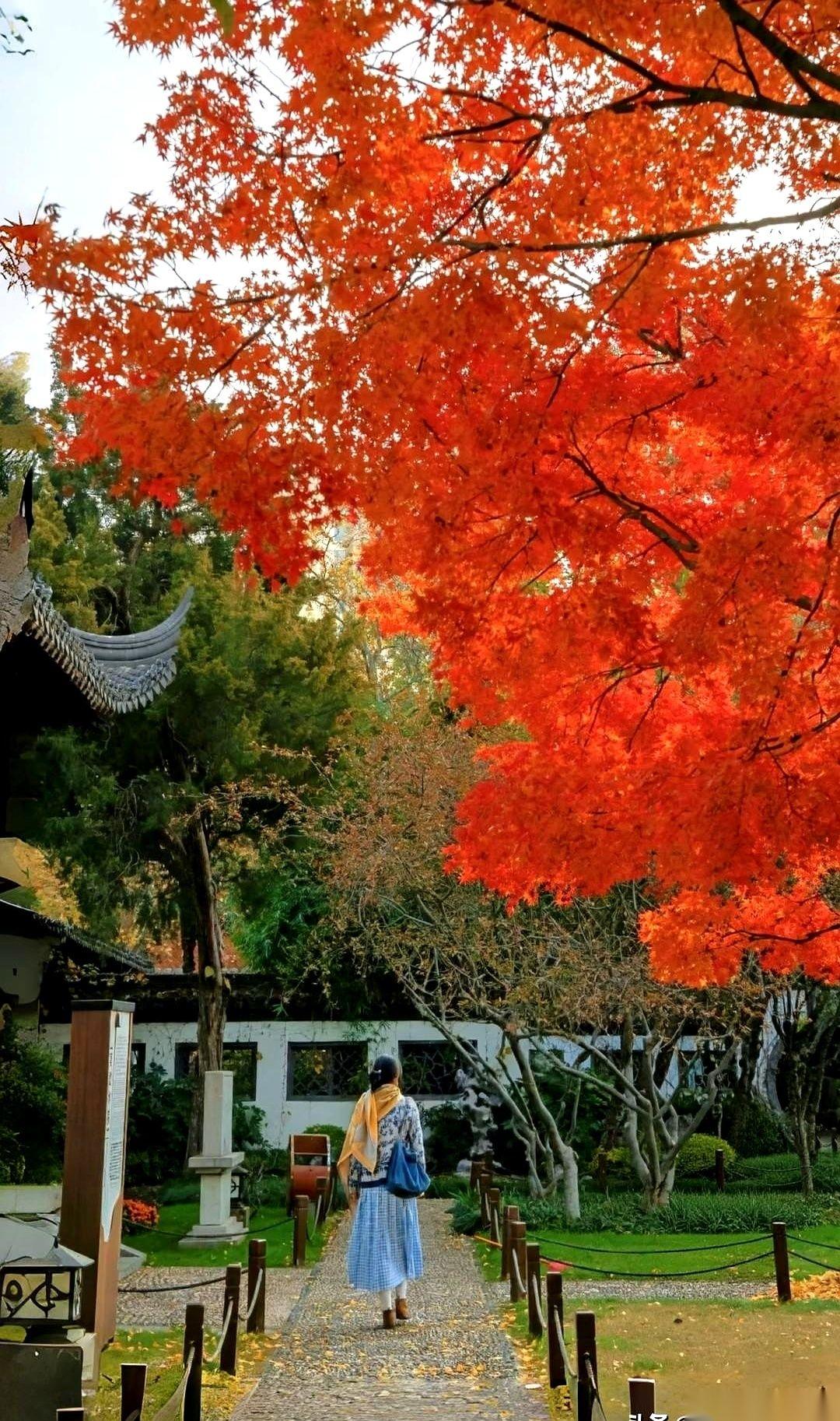 都跑去栖霞山挤破头,我真的会笑。 南京真正的“枫叶之王”,压根儿就没长在山上。 它就藏在不要钱的莫愁湖公园里,一抬头,能把人美傻了。 那不是一棵树。 那是一团烧起来的火,一整个宇宙的红色就这么直愣愣地砸你脸上,不讲道理。 说实话,今年天热,顶上带了点枯叶,算不上“完美”。 可我偏偏就爱这点不完美。 那种拼了命,也要在冬天来临前,把一辈子的美都给你看了的劲儿,太真实了。 比P得锃光瓦亮的糖水片,带劲一万倍。 就在莫愁女雕像旁边。 也别去太早,八点半才开门。人不多,安安静静的,还能顺便看看湖里的天鹅,发发呆。 生活里最大的惊喜,好像从来都不是精心策划的。 就是这种,忙里偷闲,无意间抬了个头。 不是吗?