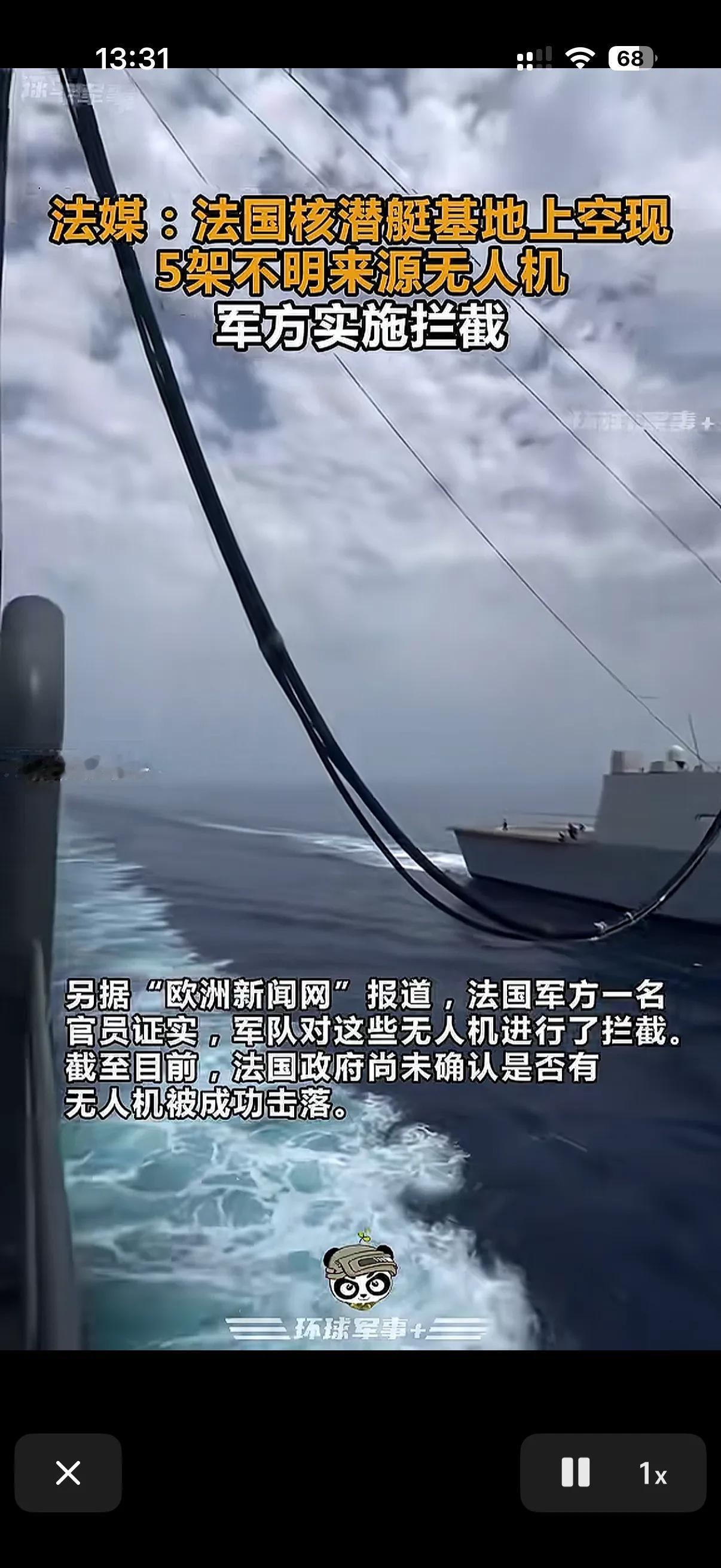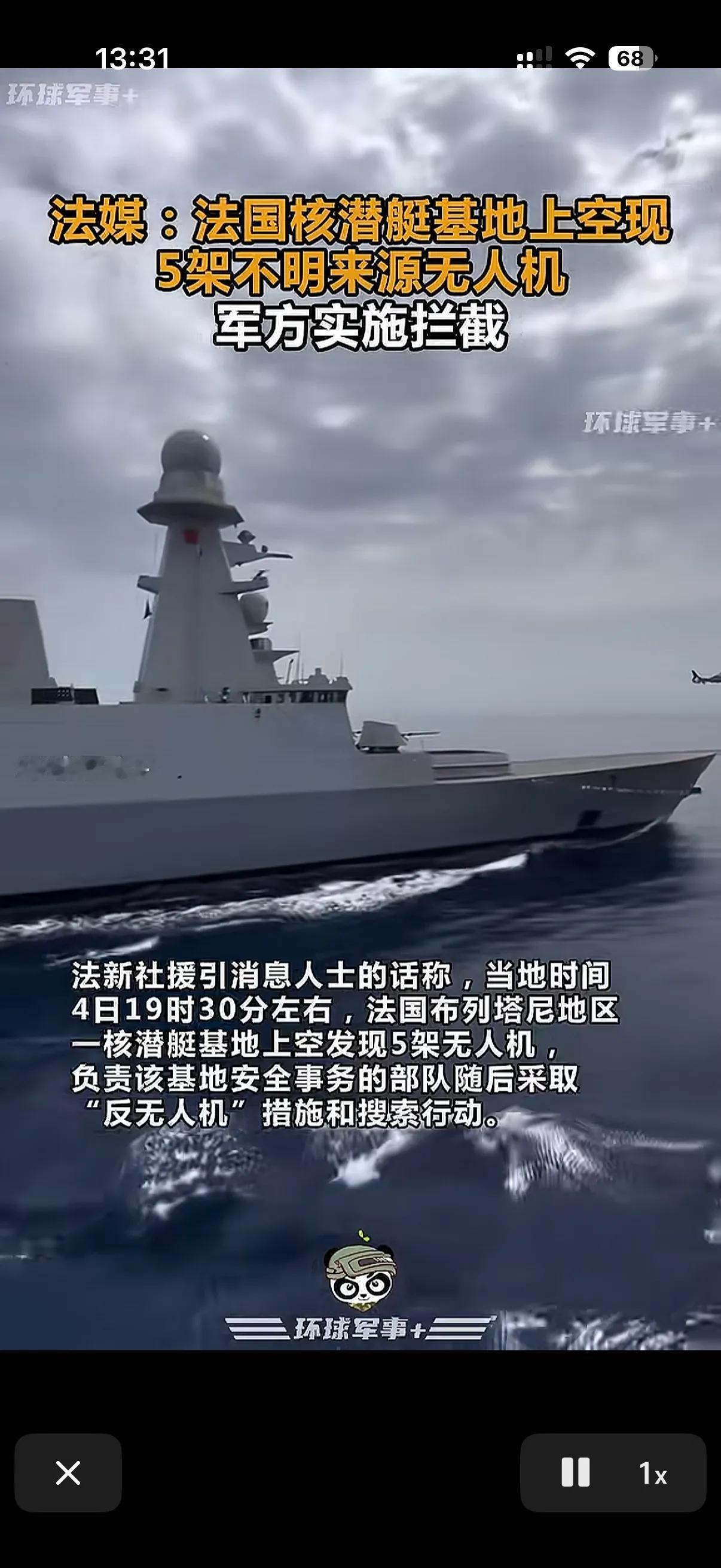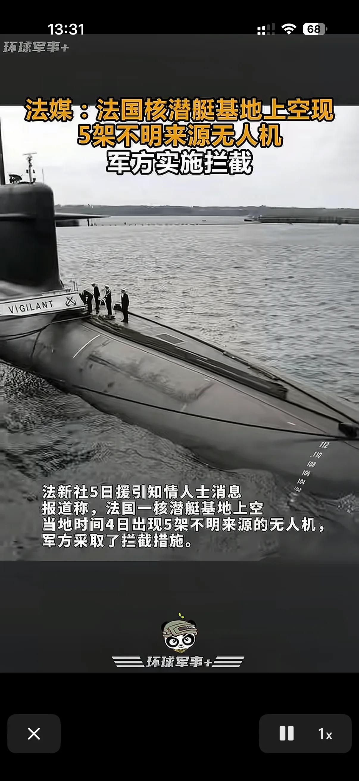 估计法国很快也要严格管控无人机了! 飞过媒体报道法国核潜艇基地上空突然出现五架无人机! 法国军方立刻实施拦截!无人机已经被驱逐,但是目前法国军方还没有公布是否有无人机被击落! 如果这五架无人机真的是有心之人来收集核潜艇数据,而这些数据又被收集走了!那么可以说法国的核潜艇以后就可以当成模型展览了! 要知道在咱们国家,在涉密单位附近时完全属于禁飞区了,别说这些无人机就是一些小孩玩的小型飞行器都不许升空! 很难理解法国核潜艇基地居然允许无人机飞到上空!