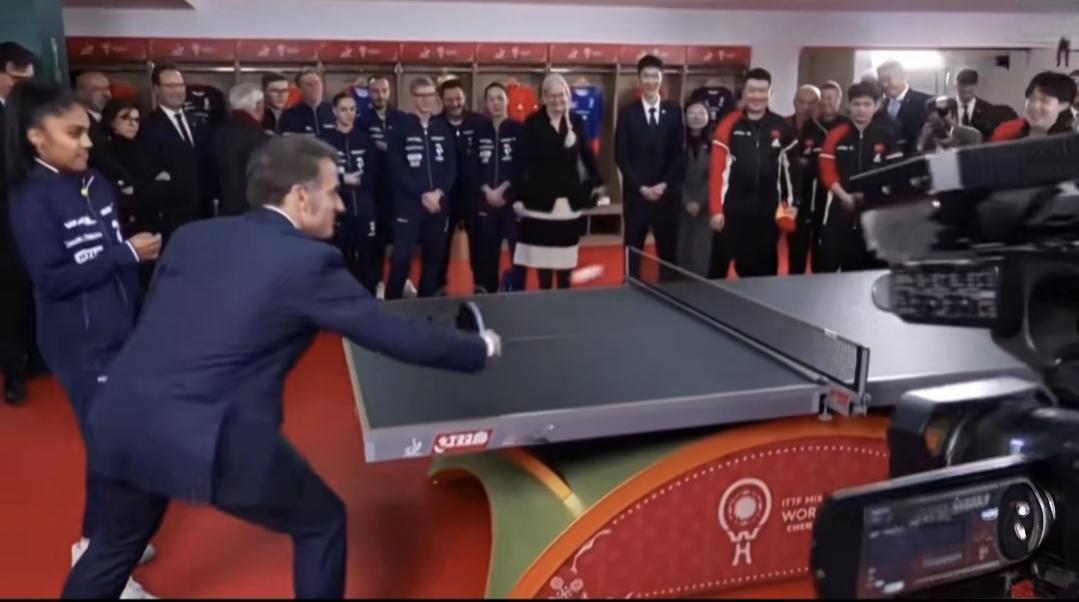 马克龙突袭成都球馆,和王楚钦、孙颖莎乒乓球对打,全场直接嗨到爆!法国总统一