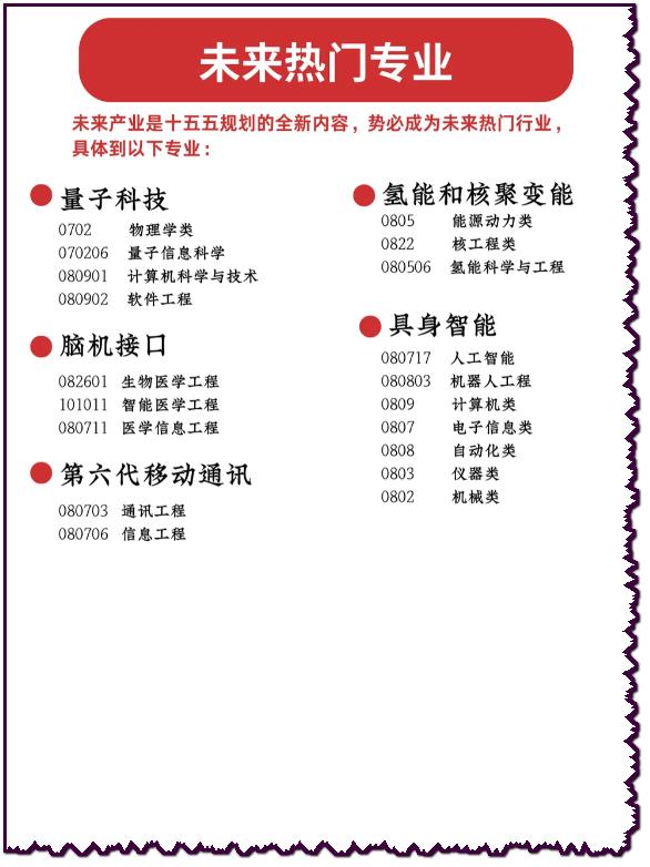 ✨家长必看!未来热门专业清单 + 择校技巧: 家人们!未来五年选专业不用瞎猜啦~十五五规划就是你的黄金指南!这些行业要爆,选对专业直接躺赢💥 🌟 未来热门专业清单(十五五规划重点) ▪️ 新能源 / 智能制造:国家战略赛道,岗位缺口大! ▪️ 数字经济 / 人工智能:各行各业都需要,就业范围广! ▪️ 生物医药 / 绿色低碳:政策红利持续,发展潜力足! 💡 择校技巧大公开 ▫️ 顶尖院校:直接冲行业细分专业(比如 AI 芯片设计)! ▫️ 普通考生:首选经济发达地区工科院校!👉 ✅ 电子信息产业发达,就业缺口大! ✅ 专业和本地产业高度绑定,毕业不愁找工作! ✅ 升学路径宽进可攻退可守! 你想选哪个未来热门专业?评论区聊聊👇 @冯哥说升学