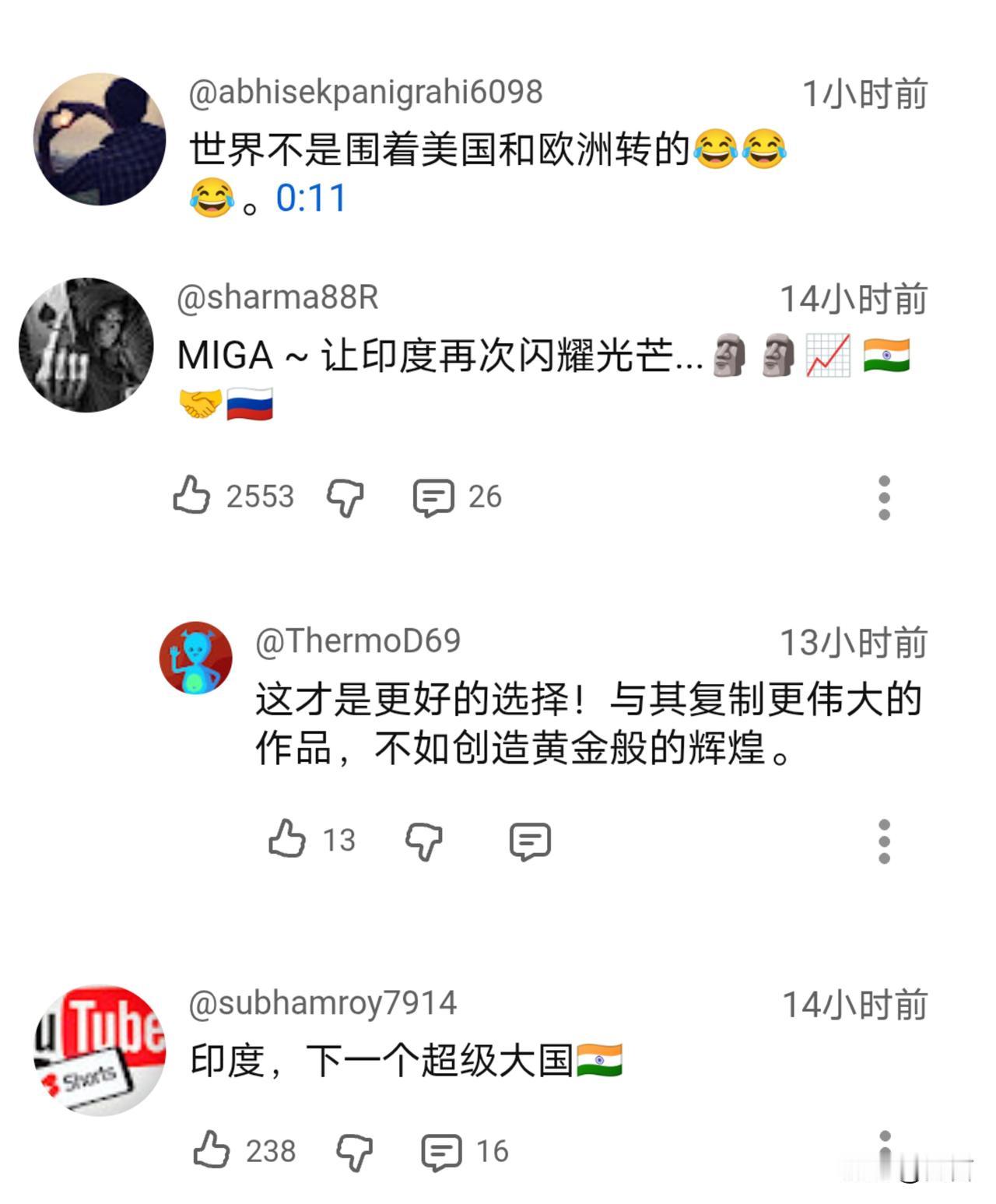 印网友:世界的目光聚焦新德里,印度将成为下一个超级大国。 据多印媒12月5日媒报道,俄罗斯和印度签署了多达29份合作文件,涵盖了能源经贸、防务等。俄罗斯承诺不间断的向印度提供能源,双方计划在2030年以前将贸易额提升1000亿美元,并扩大本币结算规模和启动欧亚经济联盟自由贸易协定的谈判。除此以外,还重点讨论了采购S500、苏57战机及合作研发先进武器的可能性。 从报道中可以看出,双方的合作达到了一个新的高度。俄罗斯需要印度在经济和俄乌冲突等方面予以支持;而印度则需要俄罗斯的军事技术和能源等。更重要一点是,未来在与美、北约谈判解决关税及俄乌冲突等问题时手里更多了一些筹码。当然,印度后期能否顶住压力,继续购买俄罗斯的能源和武器就不得而知了。 消息传出后,引发热议。对于两国的合作,印度网友给予了厚望和给出了非常高的评价。他们认为,有了俄罗斯的帮助,印度成为超级大国指日可待…
