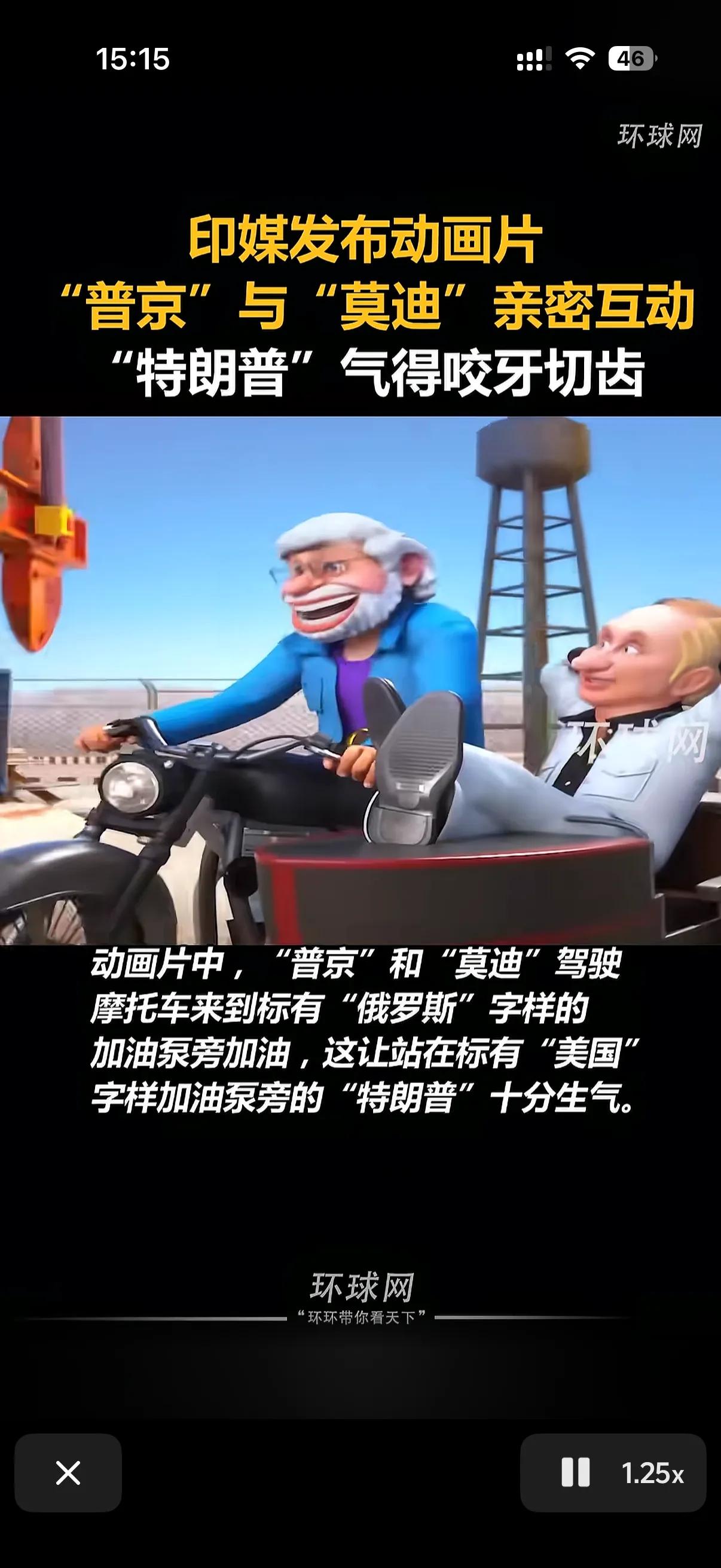 印度这是彻底飘了! 最近普京访问印度被印度盛情接待! 于是有一家印度媒体公司居然制作了一部动画片,动画片里莫迪和普京开车在城市里开心穿梭! 而特朗普却在加油站旁无能狂怒! 不是说,现在印度都这么嚣张了么!难道印度是忘记了被美国关税支配的恐惧了么! 要知道如果没有印度政府的背后支撑,就是给这家印度媒体公司一百个胆子,他们也不敢这么干! 更何况这动画一经上映就火遍印度,现在更是在外网爆火! 不得不说,他们忘记了特朗普可是出了名的小心眼! 睚眦必报可是特朗普的座右铭,上次加拿大就因为拍广告讽刺特朗普就都被特朗普制裁! 现如今印度都敢明着讽刺特朗普,就可想而知,到时候特朗普该如何制裁印度了!