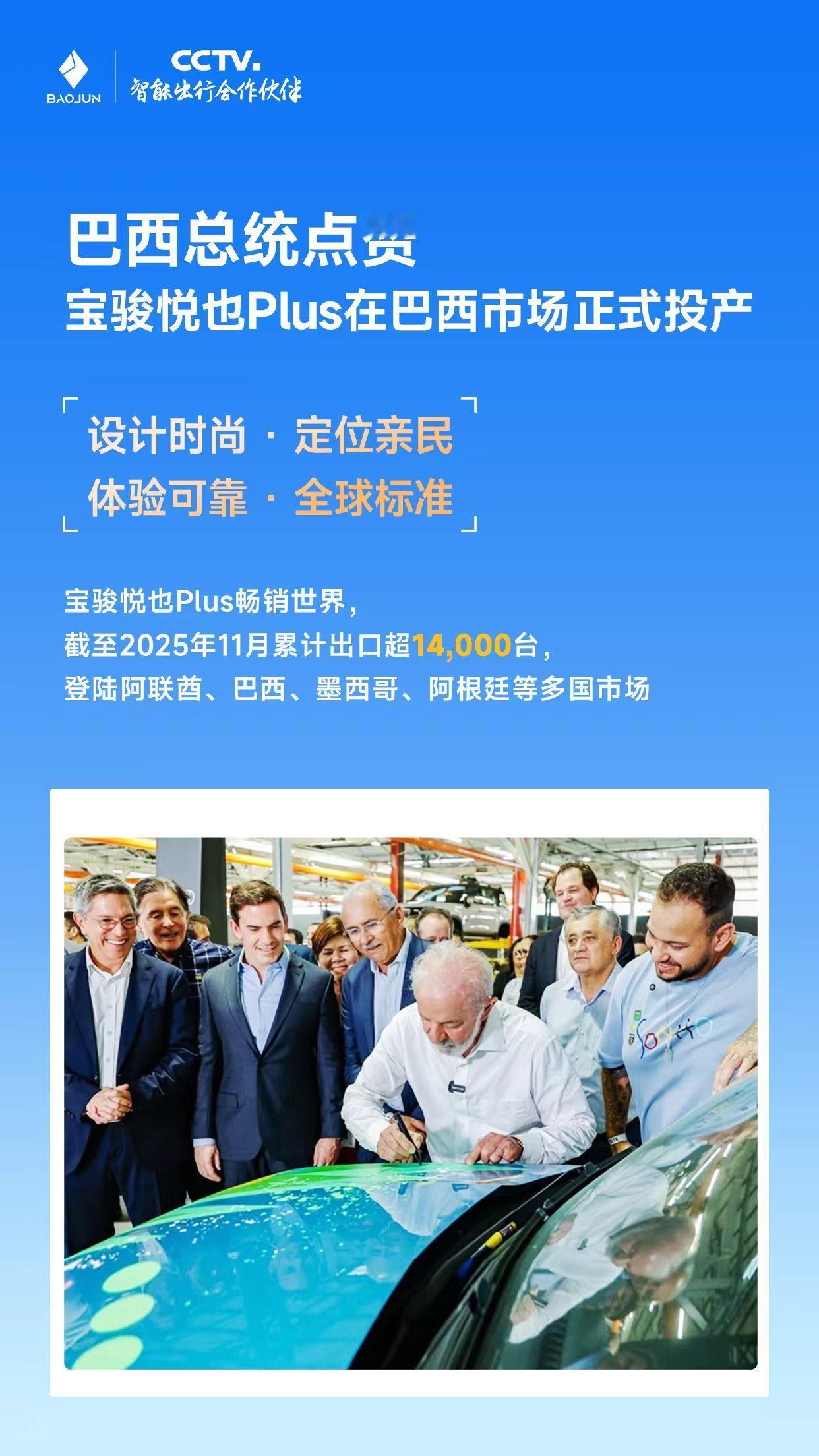 【国产纯电方盒子出海再提速】12月4日,宝骏悦也Plus在巴西组装工厂正式投产,巴西总统卢拉亲临仪式现场并给予高度评价。作为中国首款出口海外的纯电方盒子车型,悦也Plus于今年3月全球下线,5月登陆中东市场,目前已进入阿联酋、墨西哥、阿根廷等9个国家,截至11月累计出口超1.4万台。此次本地化生产标志着中国新能源汽车在南美市场的布局迈出重要一步,也体现了中国汽车工业在全球化进程中的竞争力提升。中国汽车出海新能源汽车