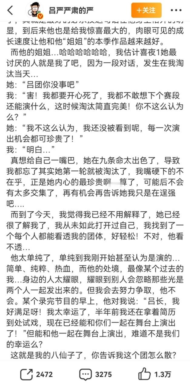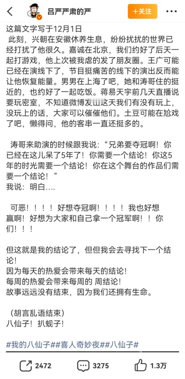 吕严发长文喜人奇妙夜 虽然总是被说成第一吐槽役,但是八仙子的点点滴滴他都记得,甚