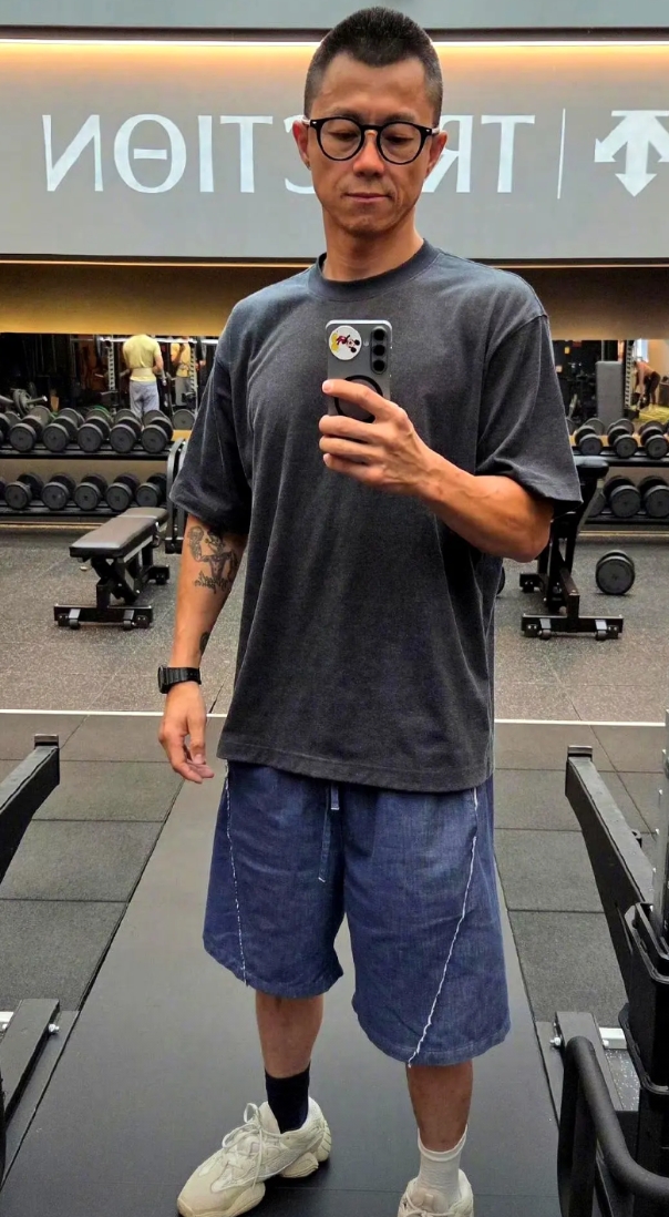 陈震43岁,看起来像63岁,一身肌肉,满脸皱纹,因为他太自律了,这个自律在于健身和饮食方面,而不在于自觉主动纳税方面。