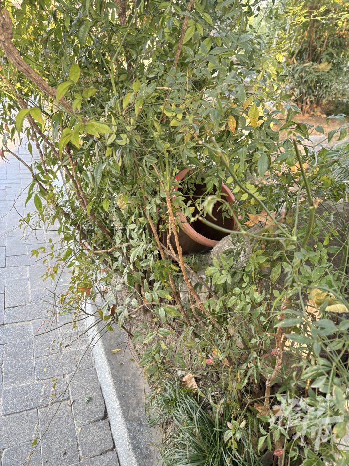 菜缸被扔在这处树丛里