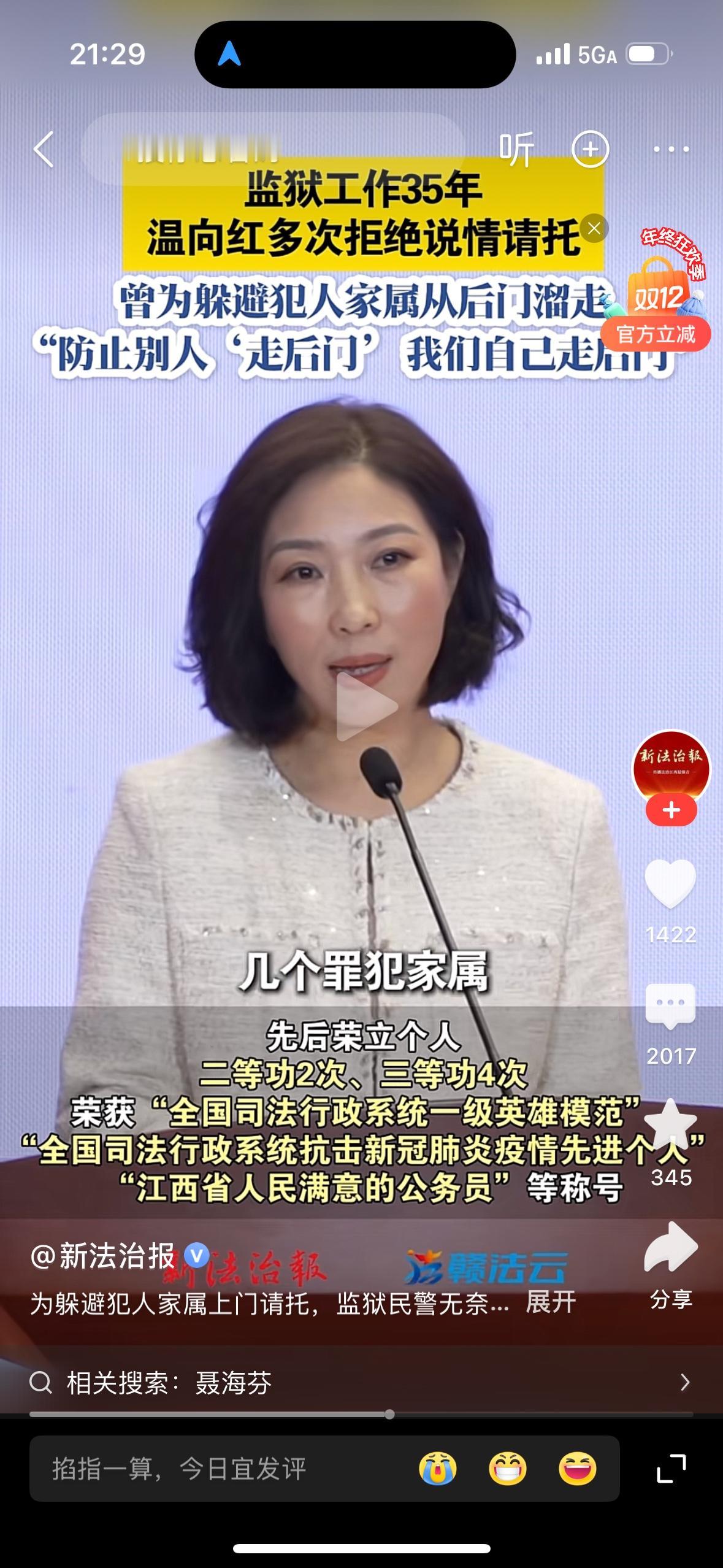 看到一个视频说监狱的党委书记的拒绝了别人的说请帮忙。不过不知道为什么是由她的妹妹来讲的,她举了一个例子说她姐姐清廉,她说清明节回家祭祖的时候有几个犯罪分子的亲属在门口等她们要请她们吃饭。然后她姐姐从后门溜走了。那么问题来了犯人的亲属怎么知道你回家祭祖的,又怎么知道你家的地址的呢?而且我觉得你直接称别人为罪犯的家属这种称呼好像太不尊重人了,我觉得犯罪分子犯罪得到了法律的惩罚,那么他已经为自己的行为付出了代价。你也应该尊重别人.为什么要用"罪犯的家属"这样侮辱人的词语呢?我觉得犯罪分子在监狱中如果得到正常的人文关怀。他们回到社会就会减少犯罪率。如果在没有违反原则的情况下,你利用他们亲属关系邦助犯人改造不是好事吗?